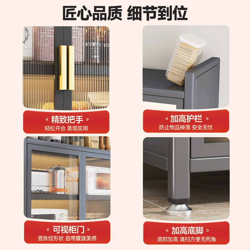 厨房置物架落地多功能夹缝收纳柜一体靠墙微波炉碗筷调料储物柜子