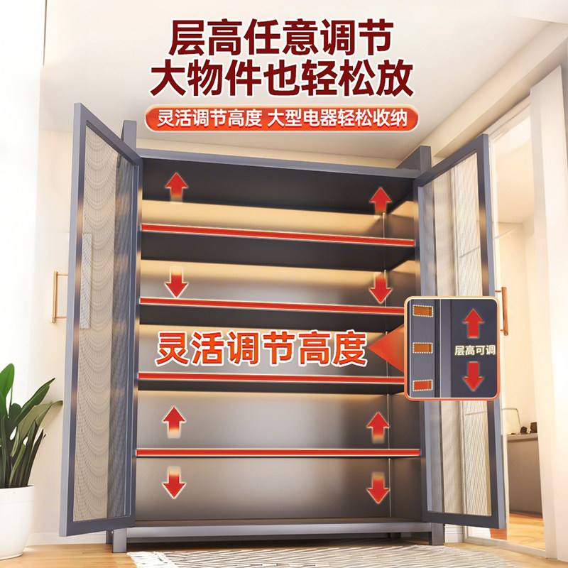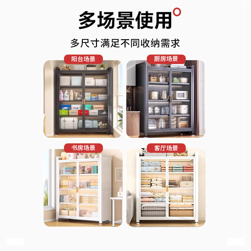 淘宝阳台收纳柜家用大容量多层钢制储物柜多功能防尘无甲醛靠墙置物架