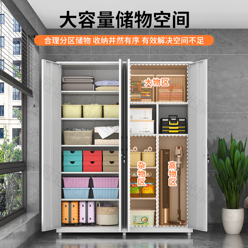 天猫多功能露台铁皮柜阳台柜大容量储物柜钢制床单被套夹缝收纳高柜子