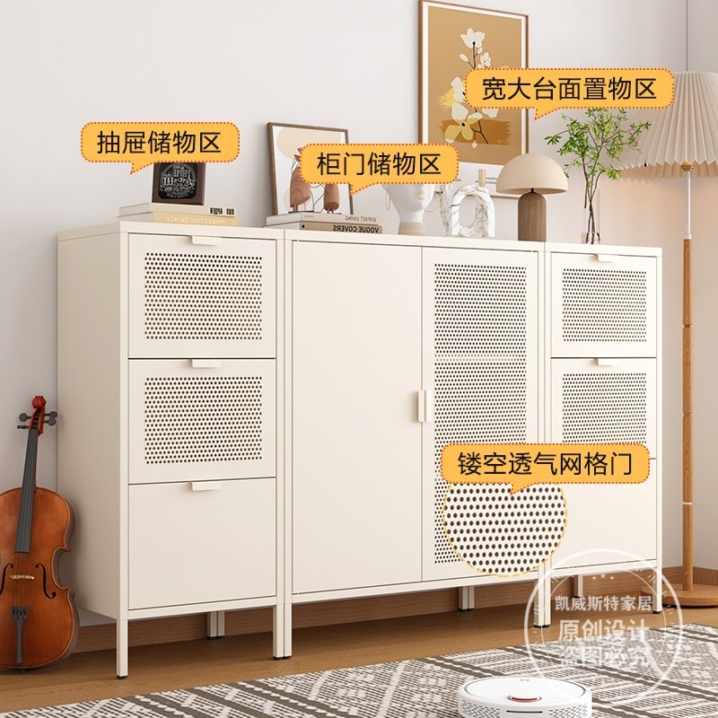 淘宝新款奶油风钢制阳台柜家用卧室储物柜多巴胺收纳柜置物柜防晒防水