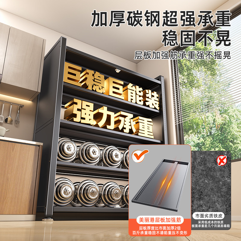 天厨房置物架落地多功能夹缝收纳柜一体靠墙微波炉碗筷调料储物柜子