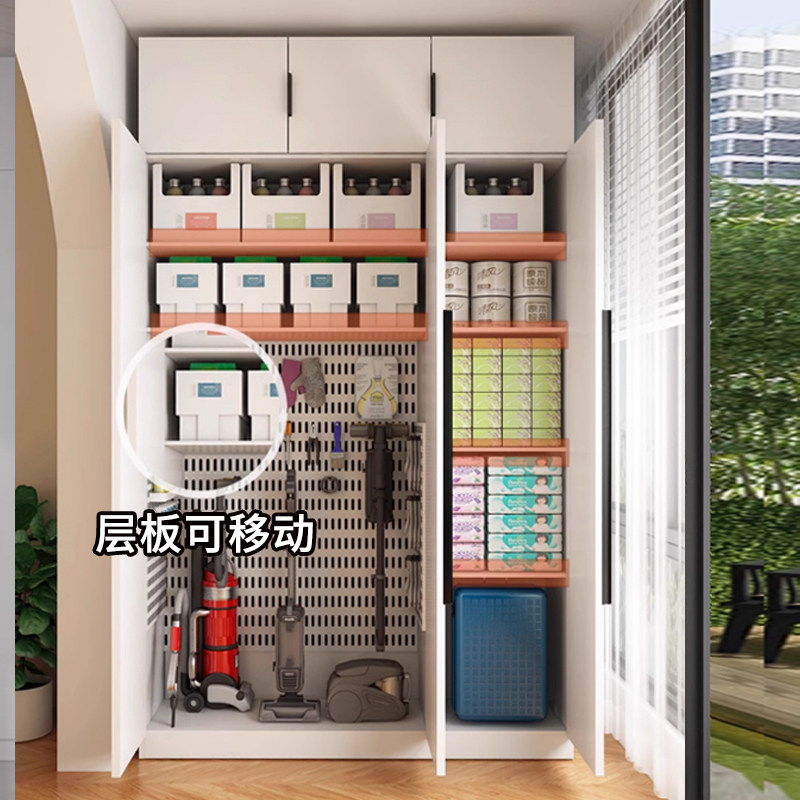 阳台储物柜靠墙一体行李箱收纳柜家用防晒大容量杂物柜衣柜铁皮柜