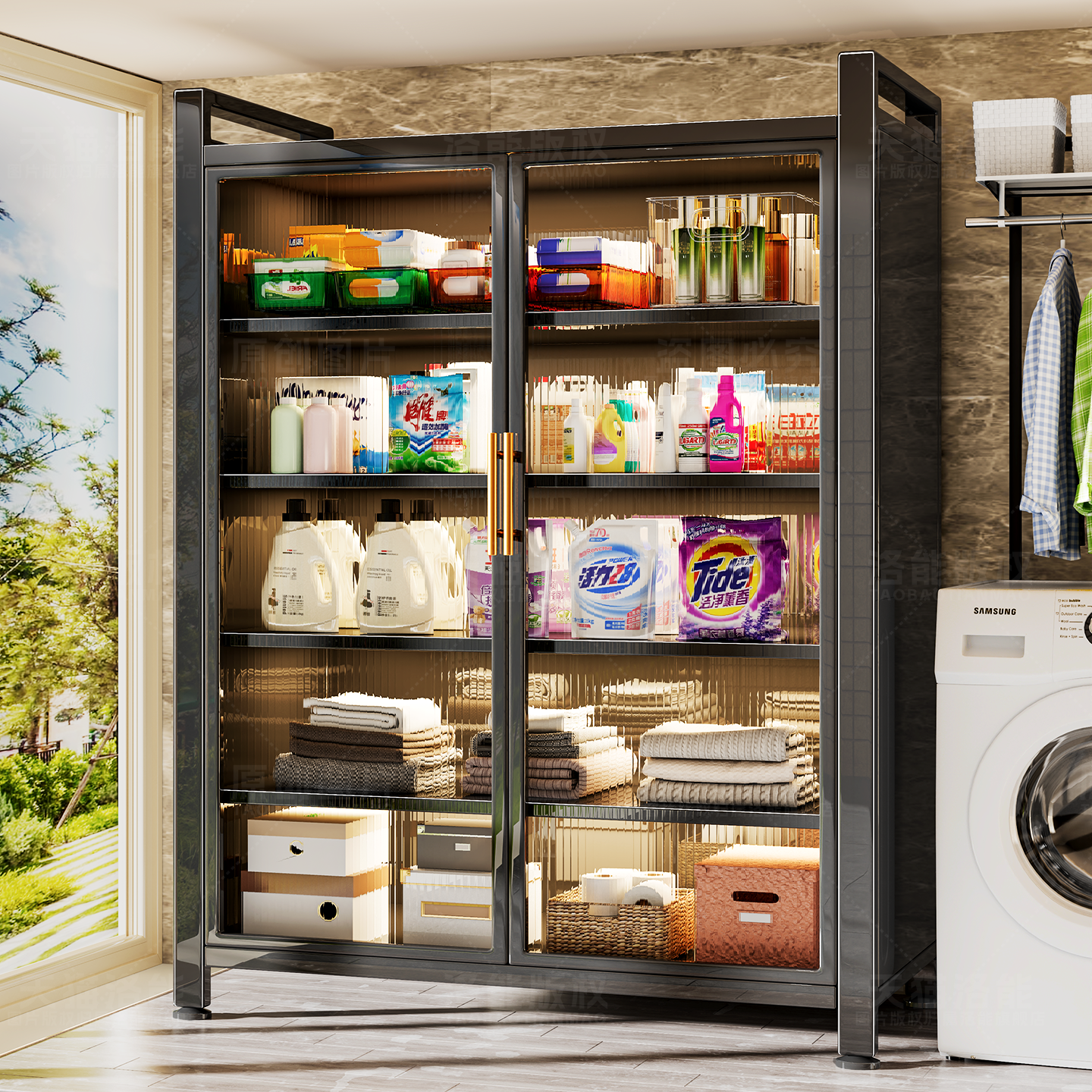 淘家用钢制置物收纳柜子卧室阳台客厅多层储物柜多功能整理柜杂物柜