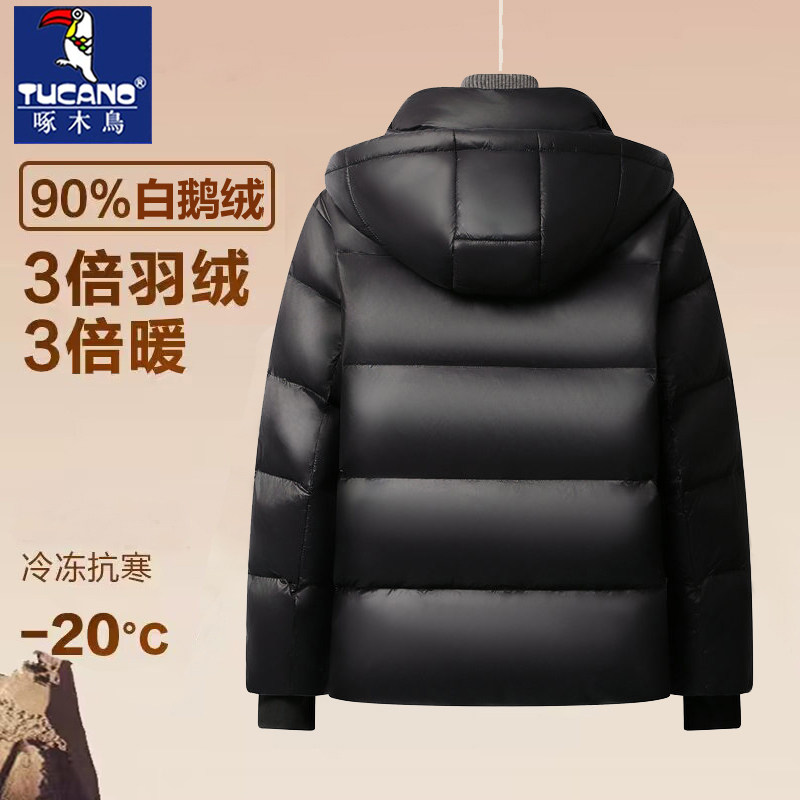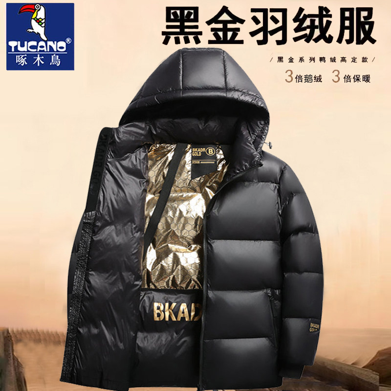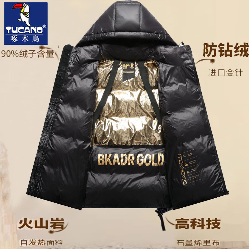 淘宝啄木鸟黑金鹅绒羽绒服连帽可脱卸男女款冬季加厚保暖防寒短款外套