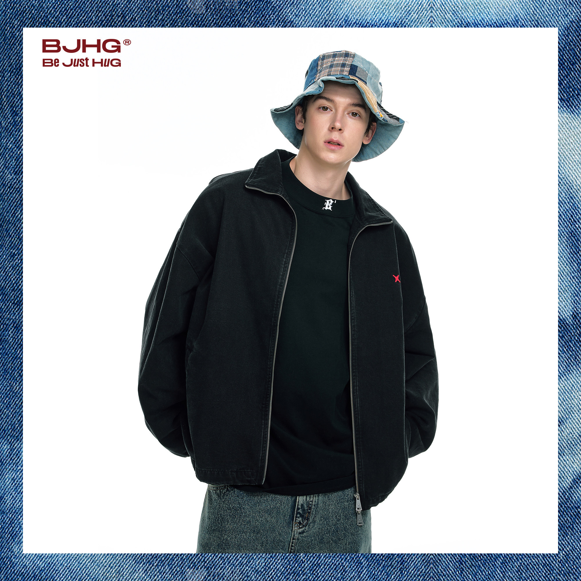天猫BJHG不计后果水洗牛仔外套男款冬季潮牌高街蓝重工美式复古夹克女