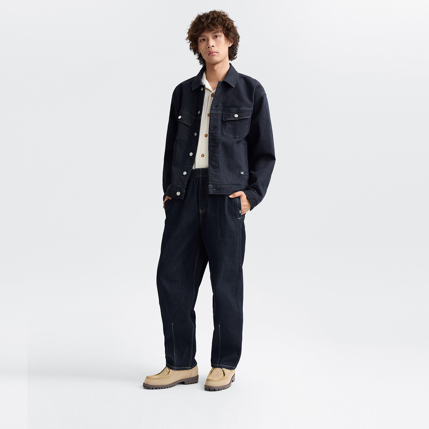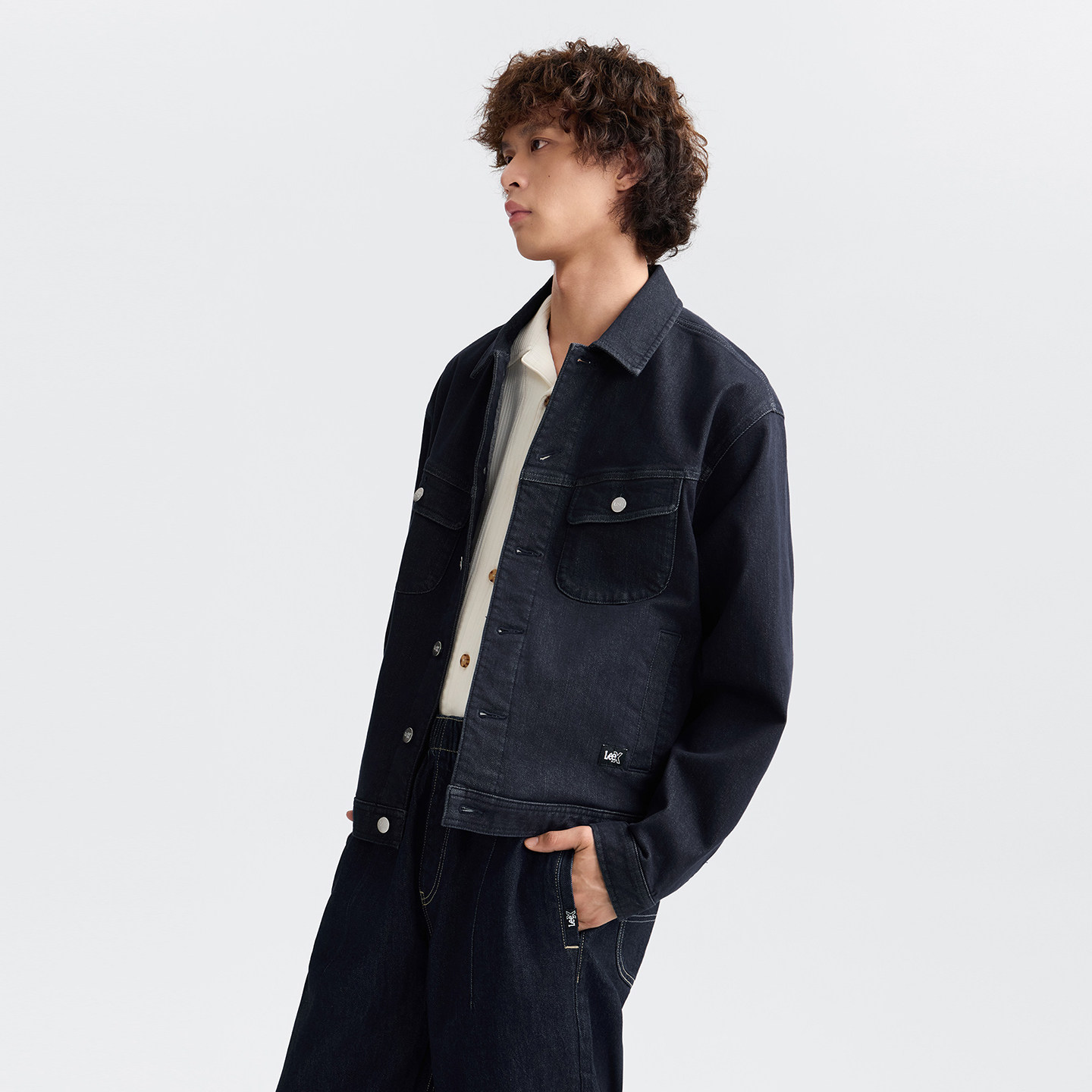 天猫Lee25秋冬新品舒适版翻领不易褪色深蓝色磨毛男牛仔夹克外套保暖