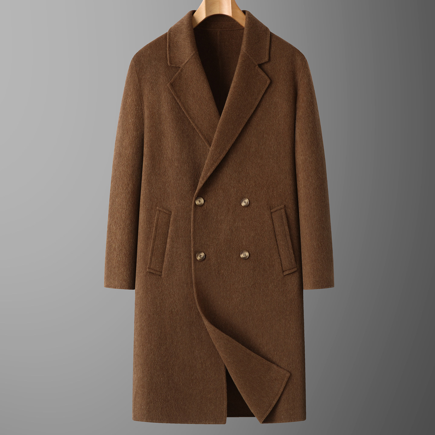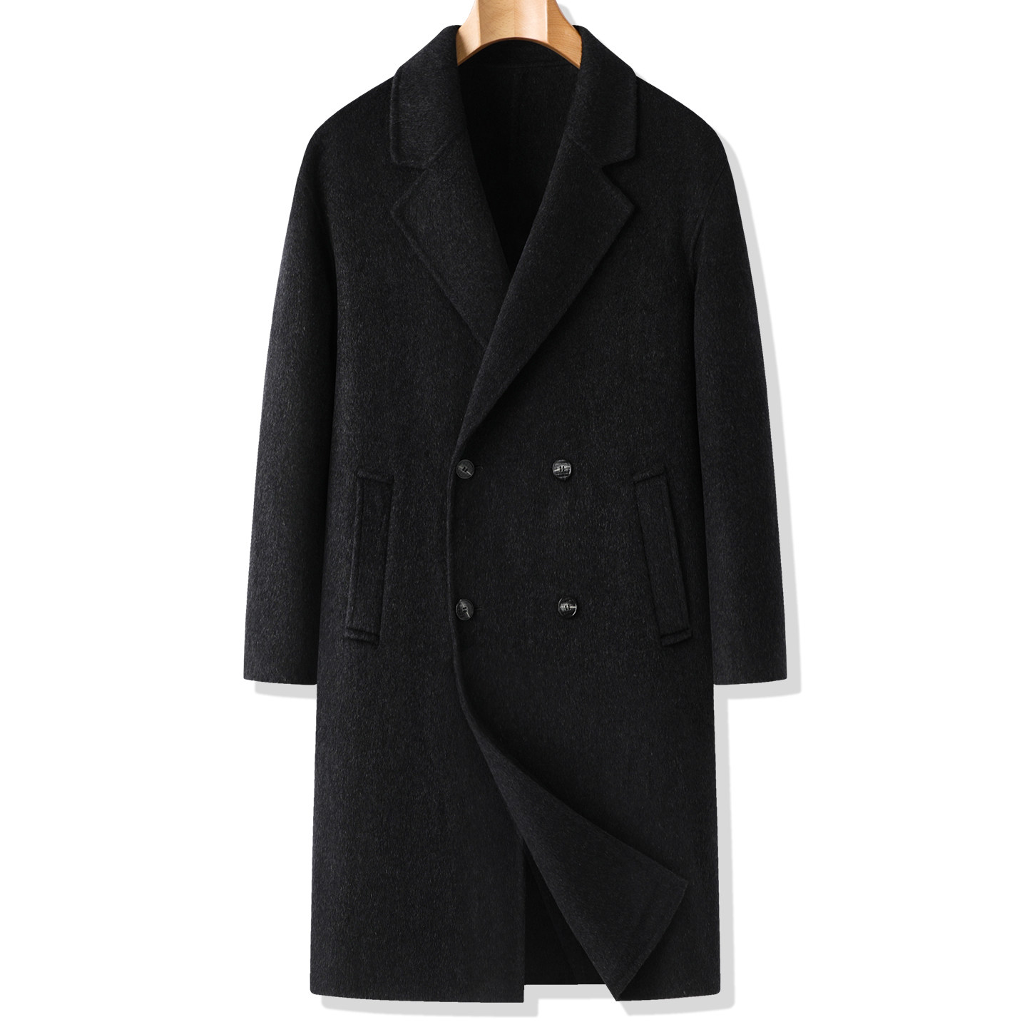 天猫双排扣长款羊毛呢大衣男式冬季加大码呢子外套肥佬商务双面呢风衣