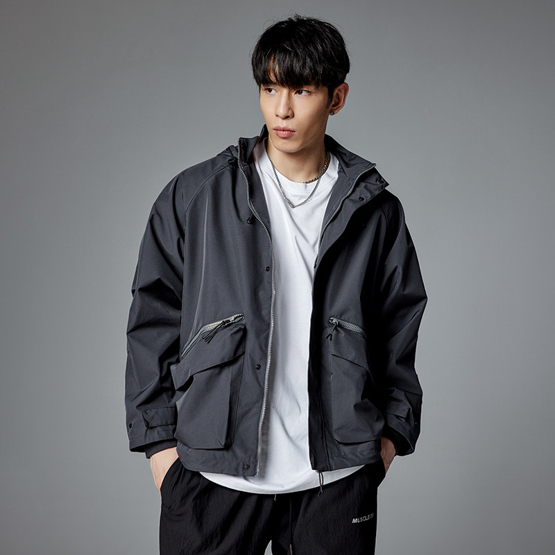 天猫肌肉狗 秋冬新款运动休闲宽松加绒保暖连帽夹克外套男