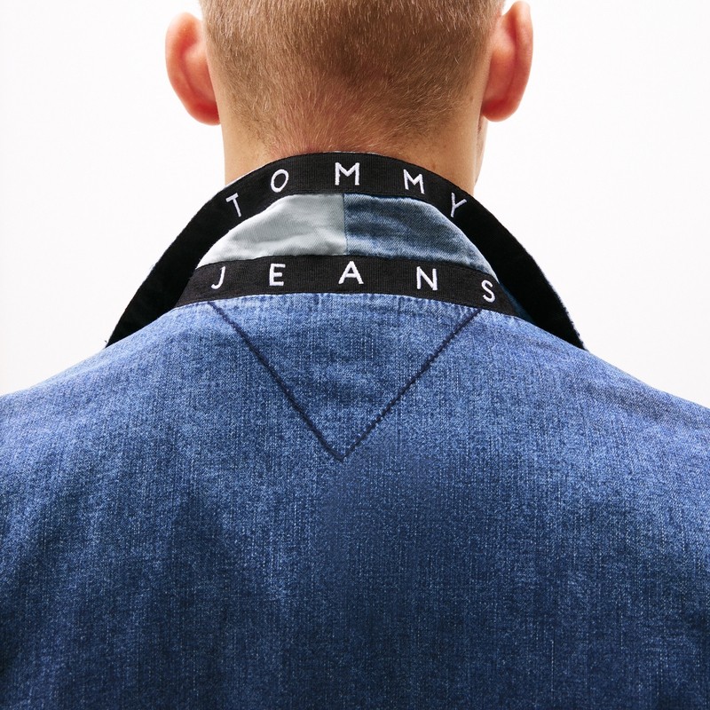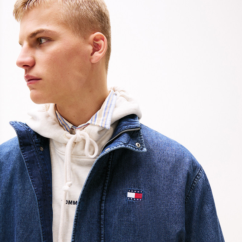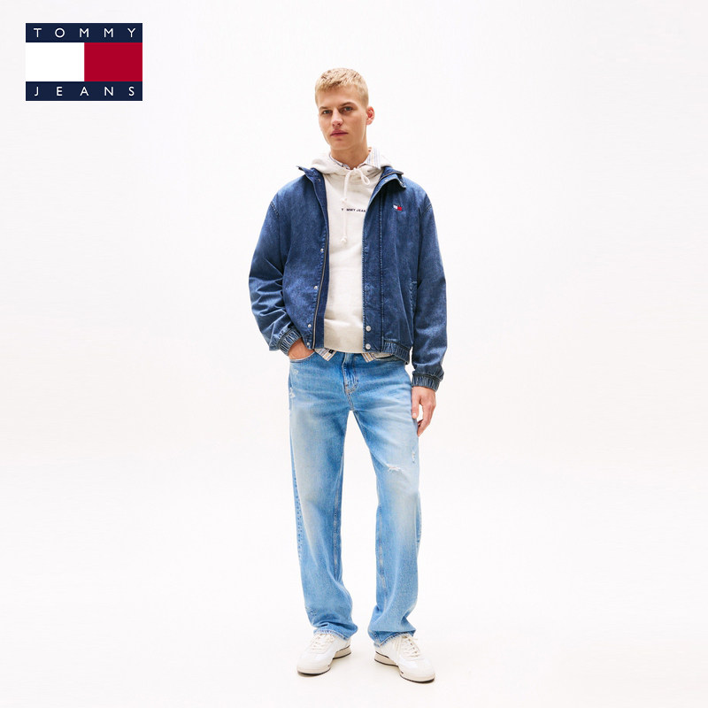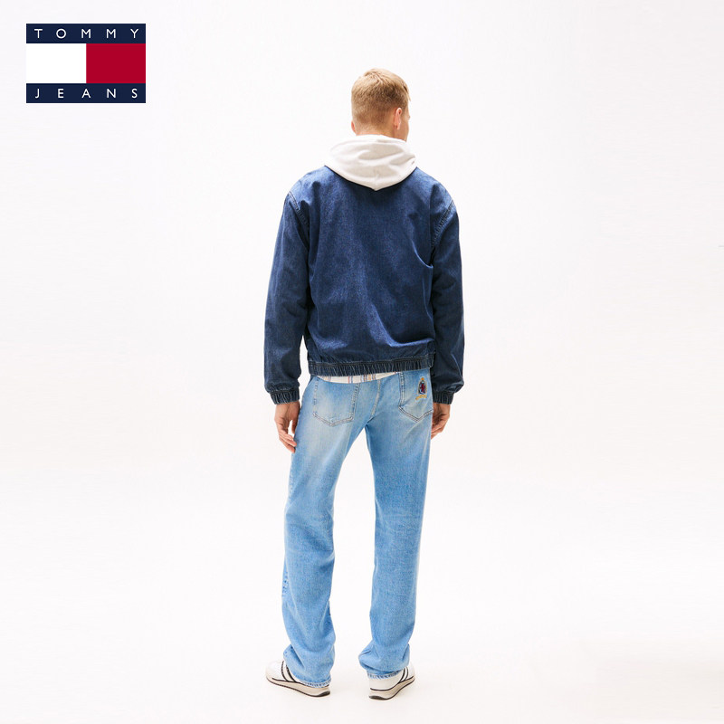 天猫Tommy25春夏新款男装美式复古潮流刺绣宽松工装拼色立领牛仔外套