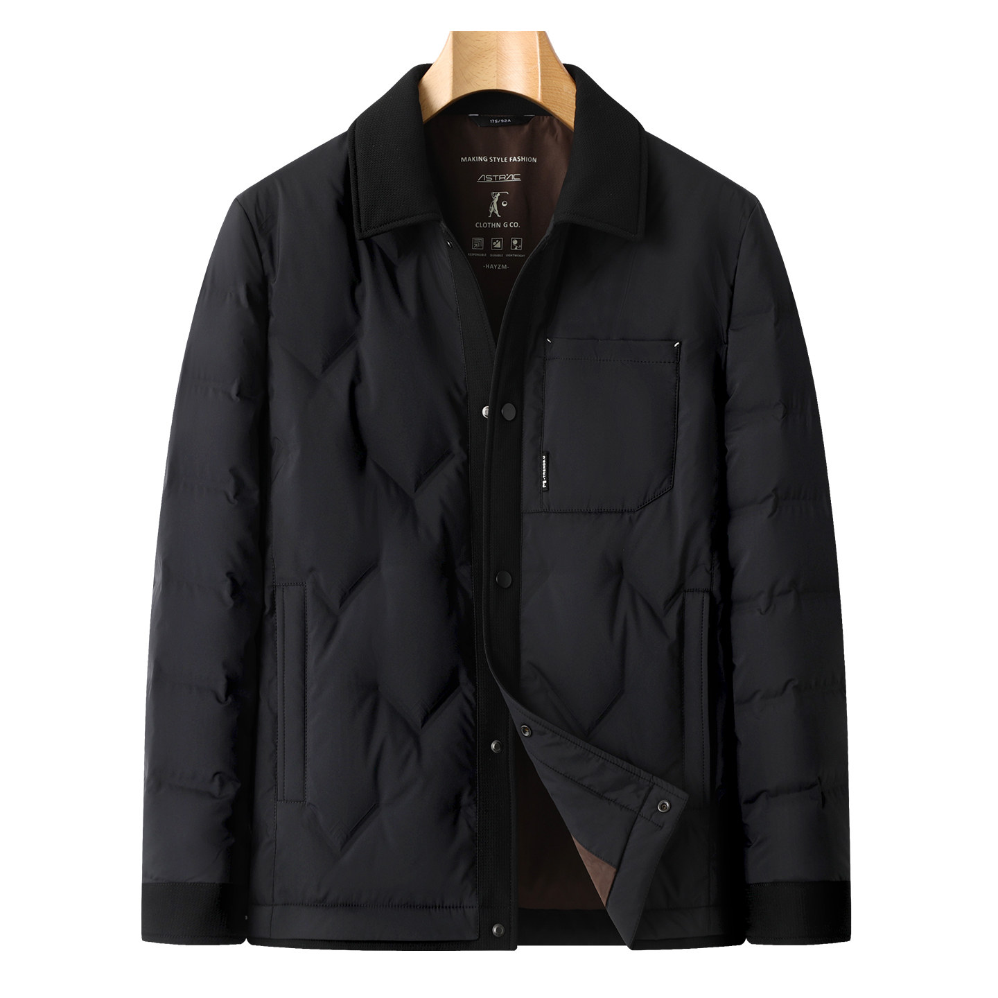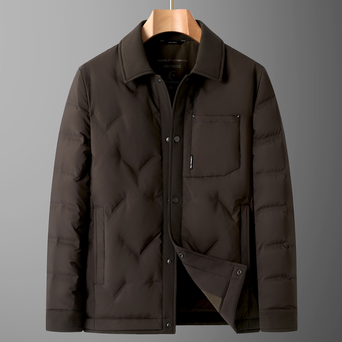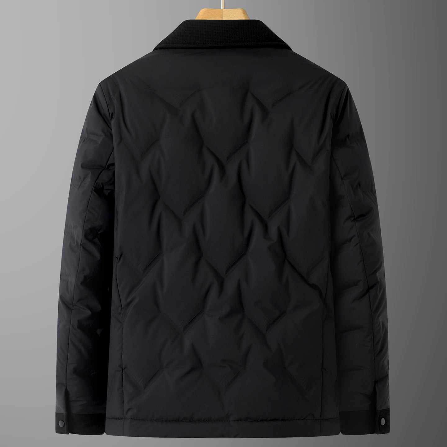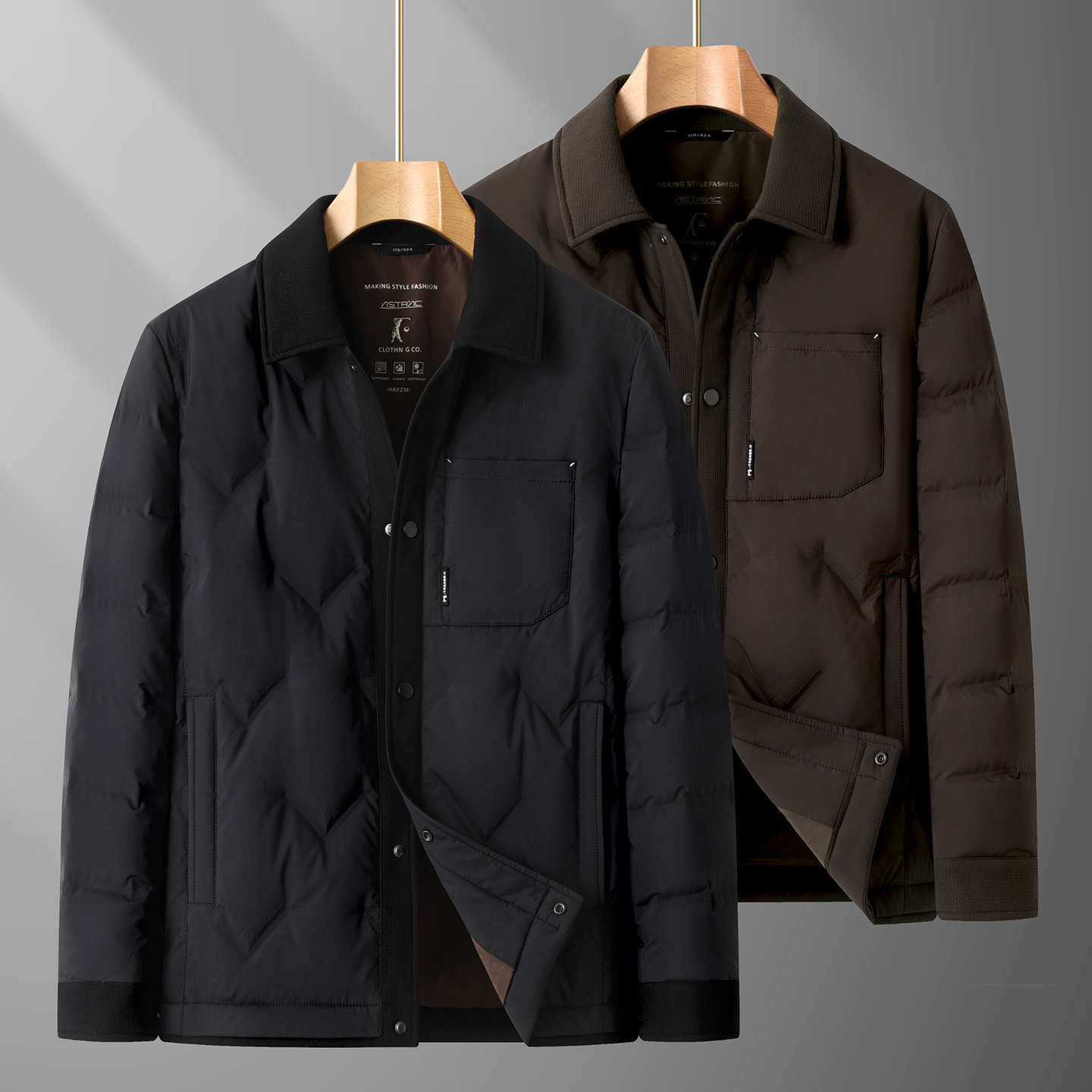 天猫冬季保暖90鸭绒夹克男大码保暖外套胖子时尚休闲单排扣翻领羽绒服