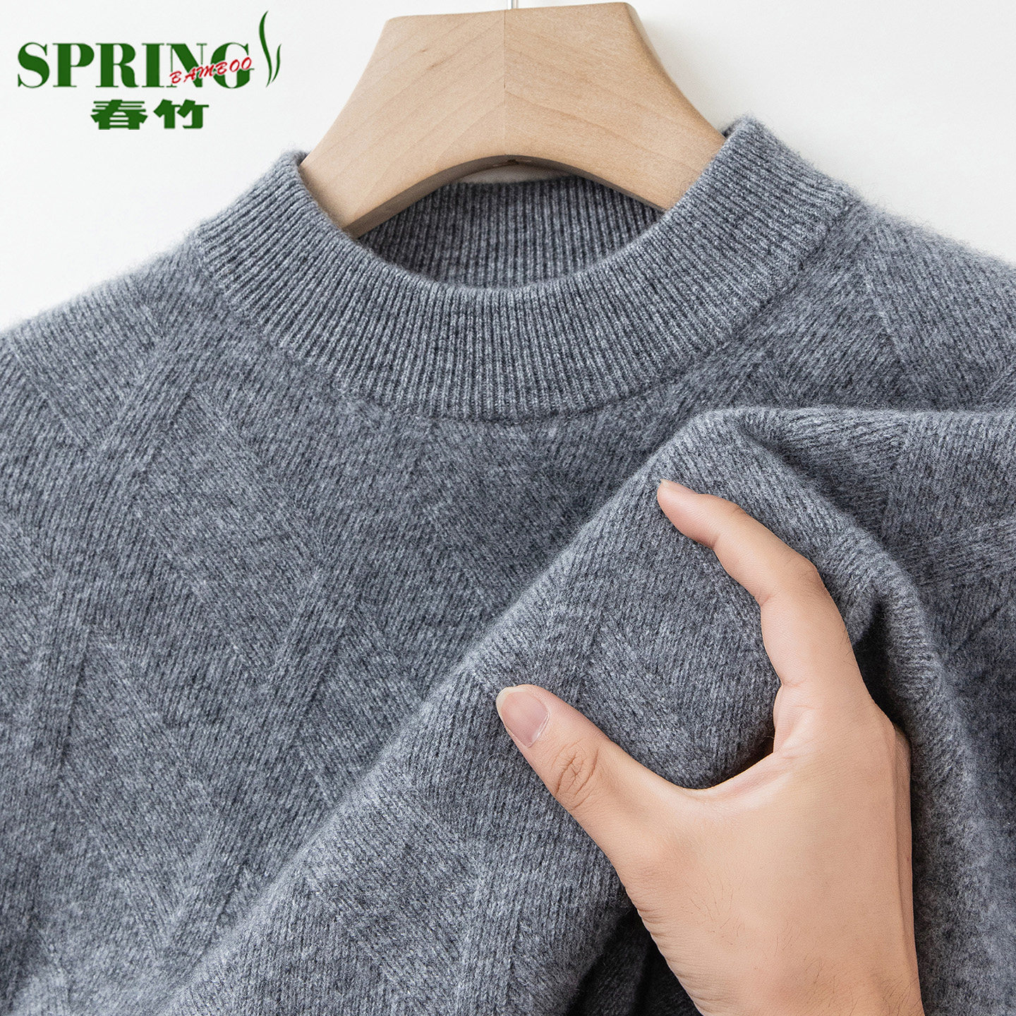 春竹高端特级纯山羊绒衫男半高圆领冬季新款加厚中年休闲大码毛衣