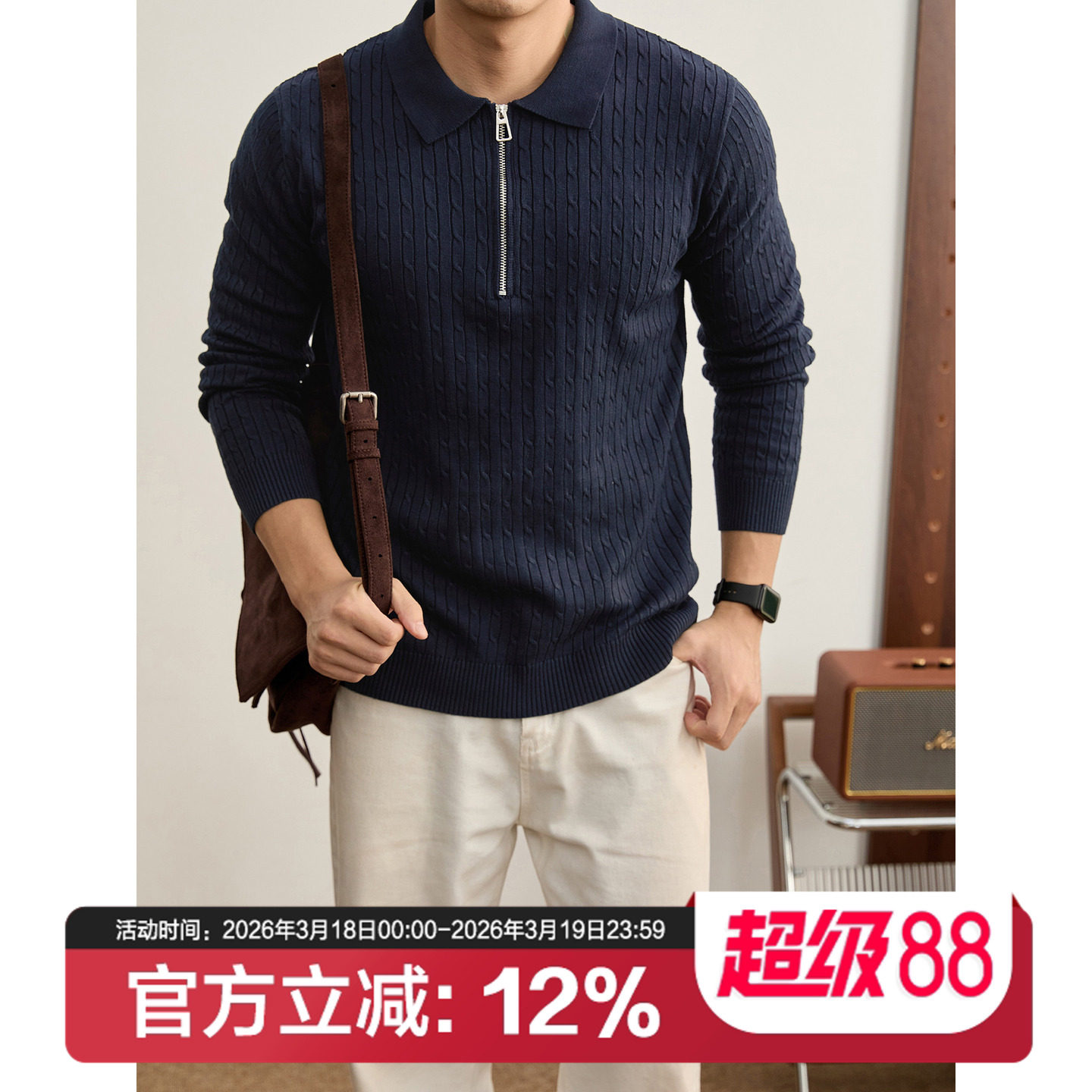 淘啄木鸟休闲慵懒风翻领半拉链毛衣男秋冬季宽松百搭针织衫打底衫潮