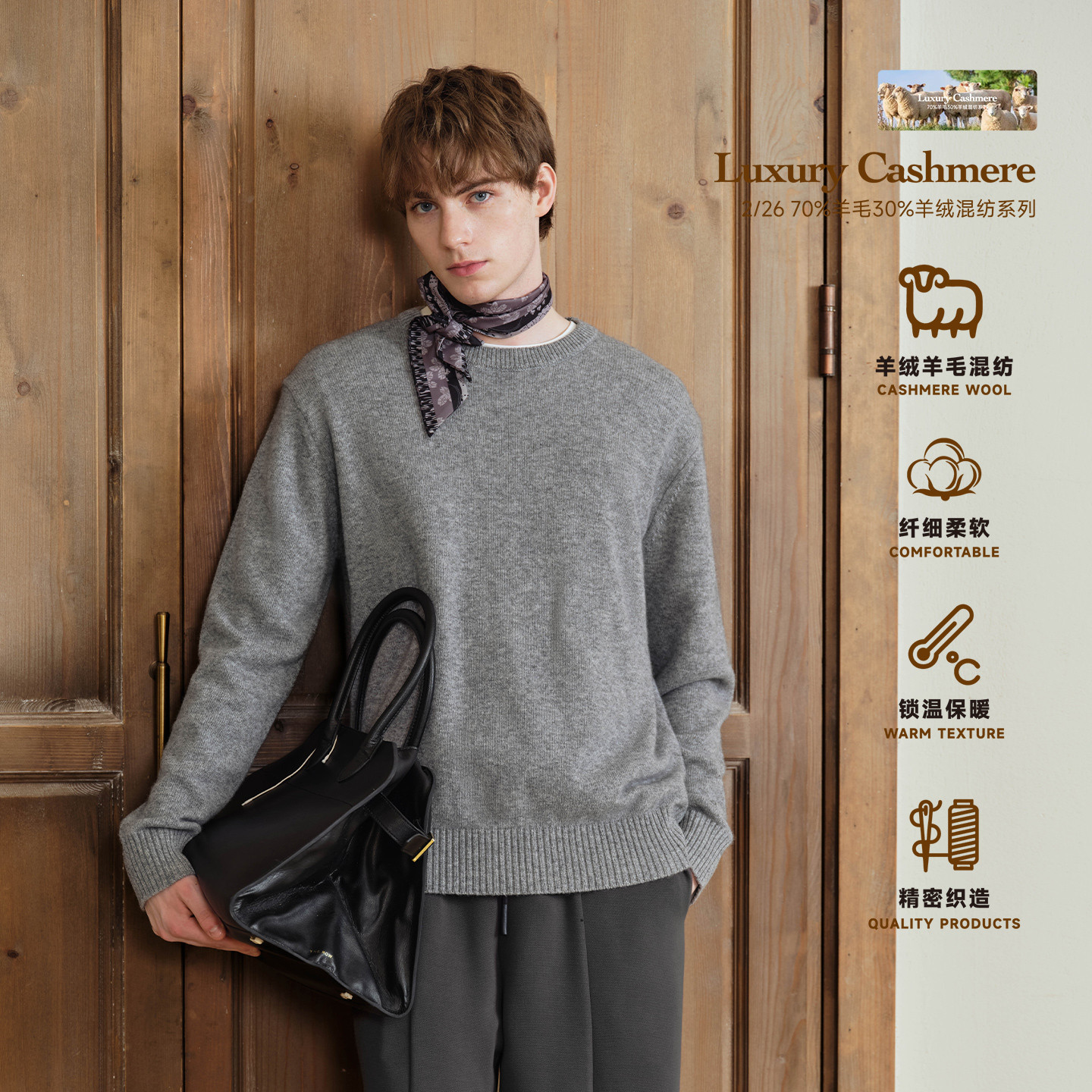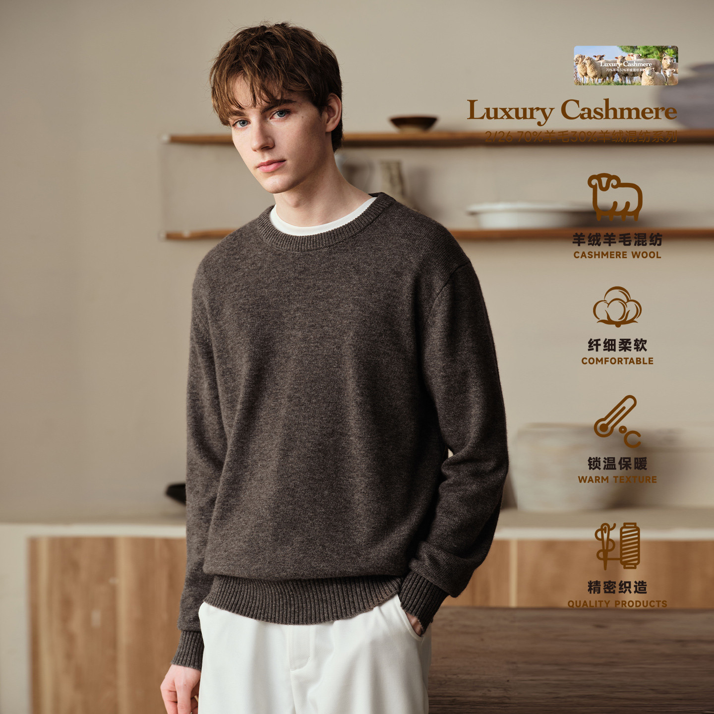淘TOPTIERBRO23AW德绒®羊毛混纺圆领毛衣男基础款保暖针织衫