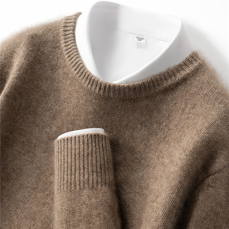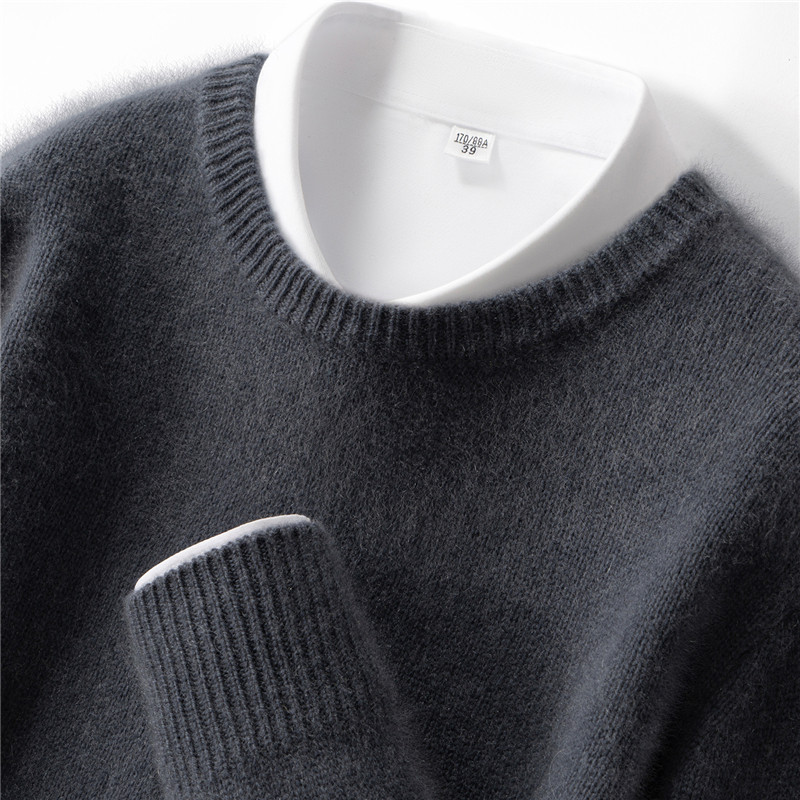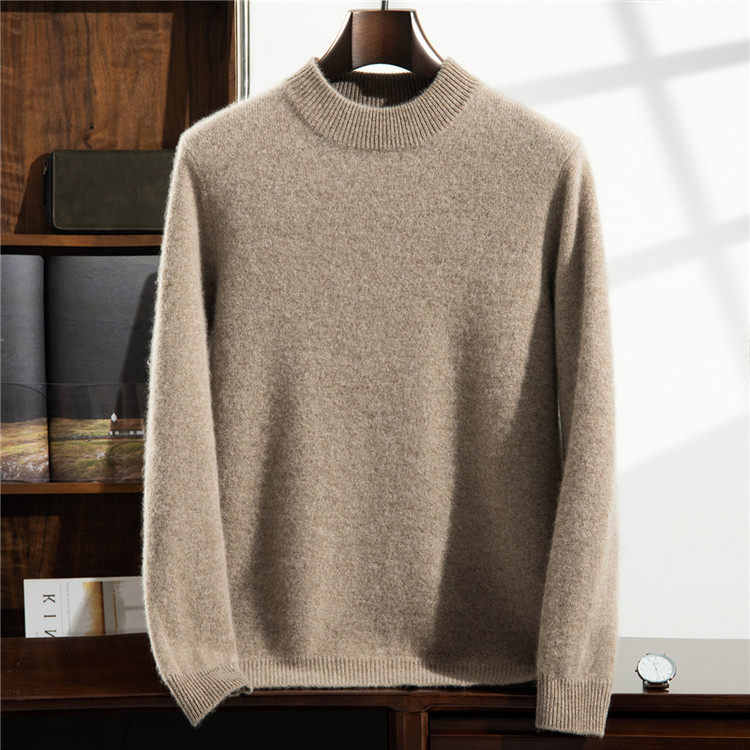 鄂尔多斯市男士加厚羊毛衫半高领打底针织衫圆领羊毛衫爸爸装毛衣