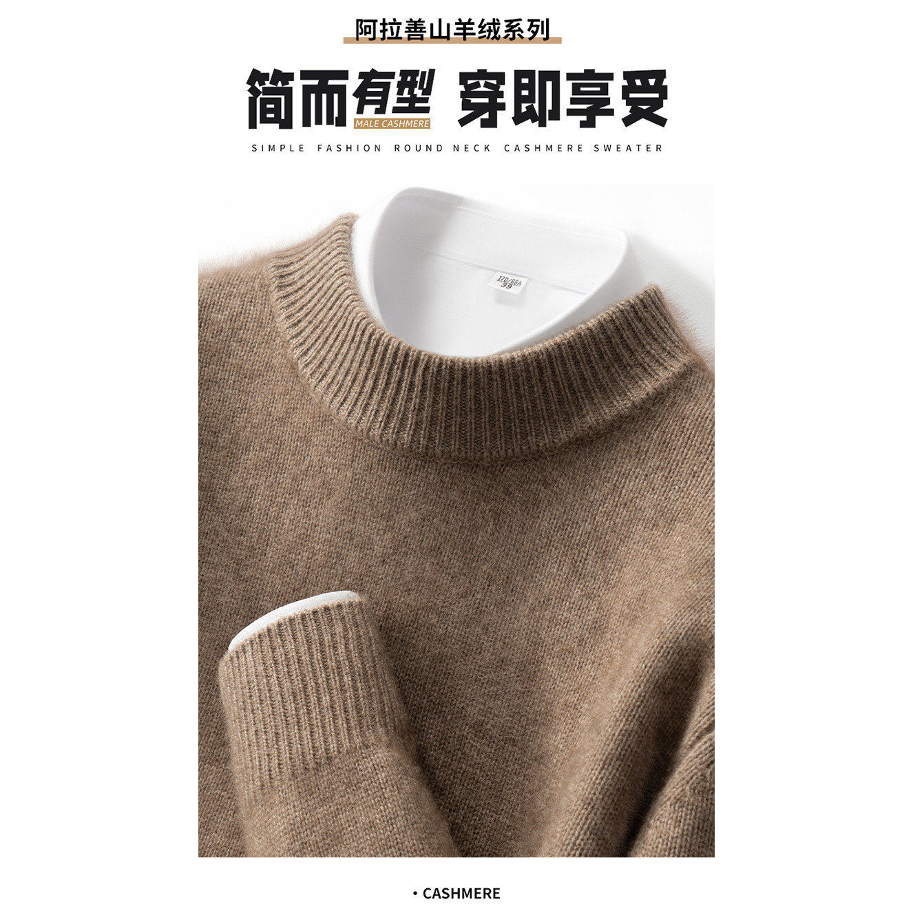 淘鄂尔多斯市男士加厚羊毛衫半高领打底针织衫圆领羊毛衫爸爸装毛衣