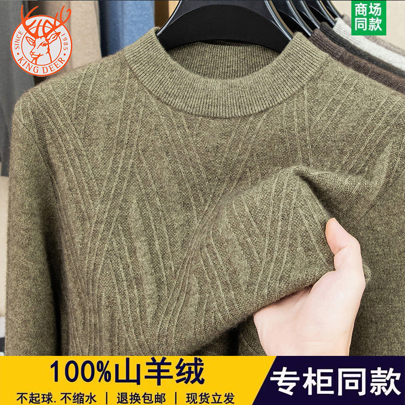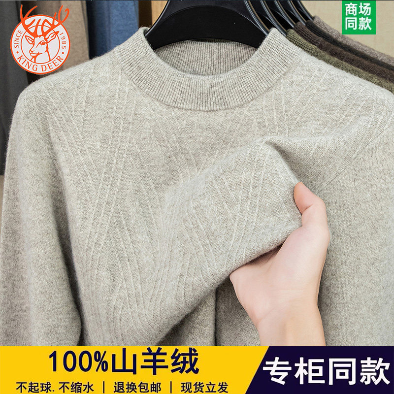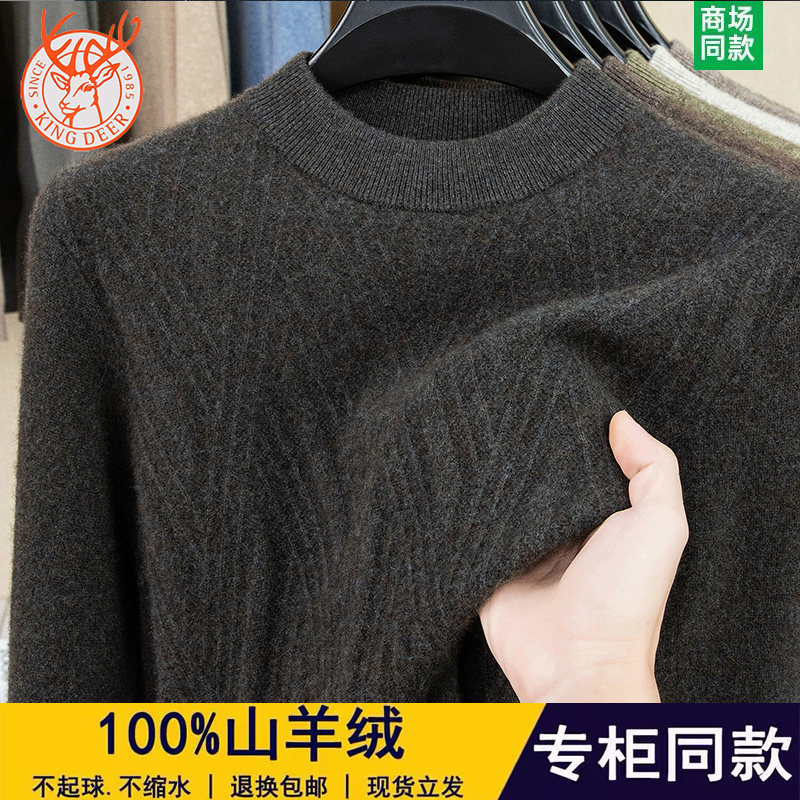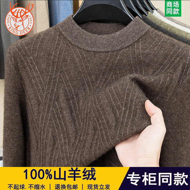 淘宝鹿王羊绒衫男100%纯羊绒半高圆领羊毛衫轻奢正品加厚保暖打底毛衣