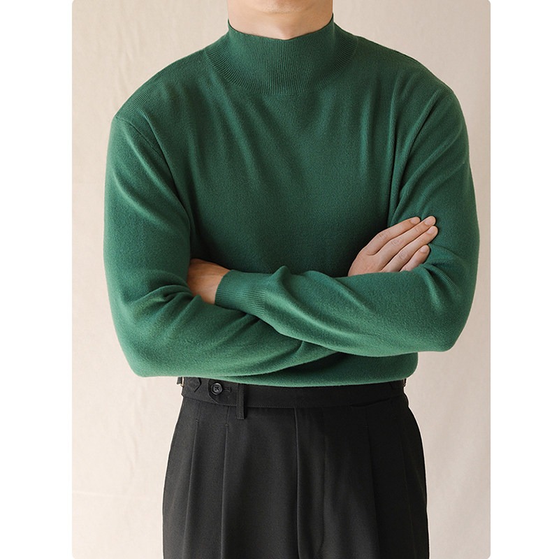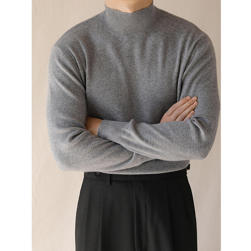 淘宝半高领毛衣男秋冬套头保暖修身免烫针织衫商务休闲纯色绅士打底衫