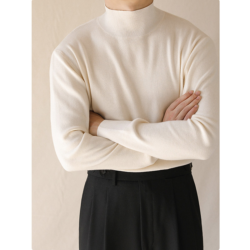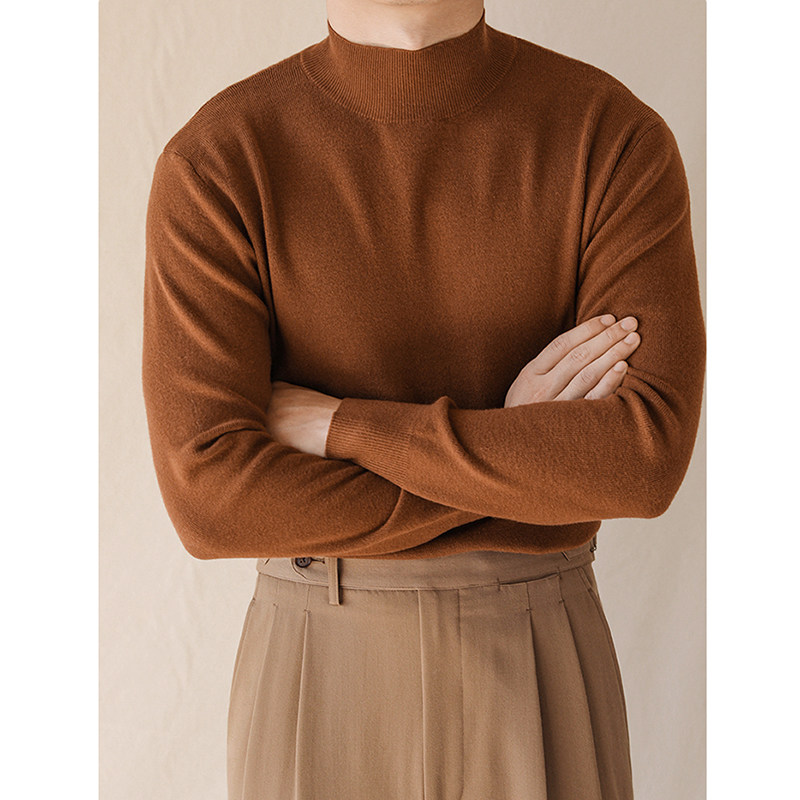 淘秋冬新款纯色半高领羊毛衫百搭男士针织衫中青年打底毛衫男装