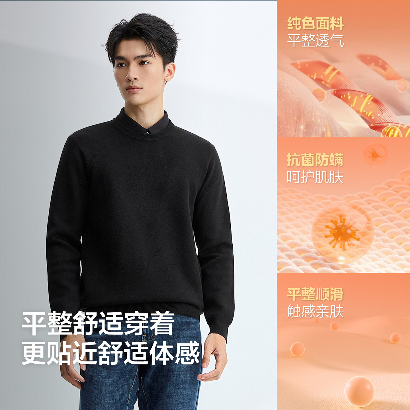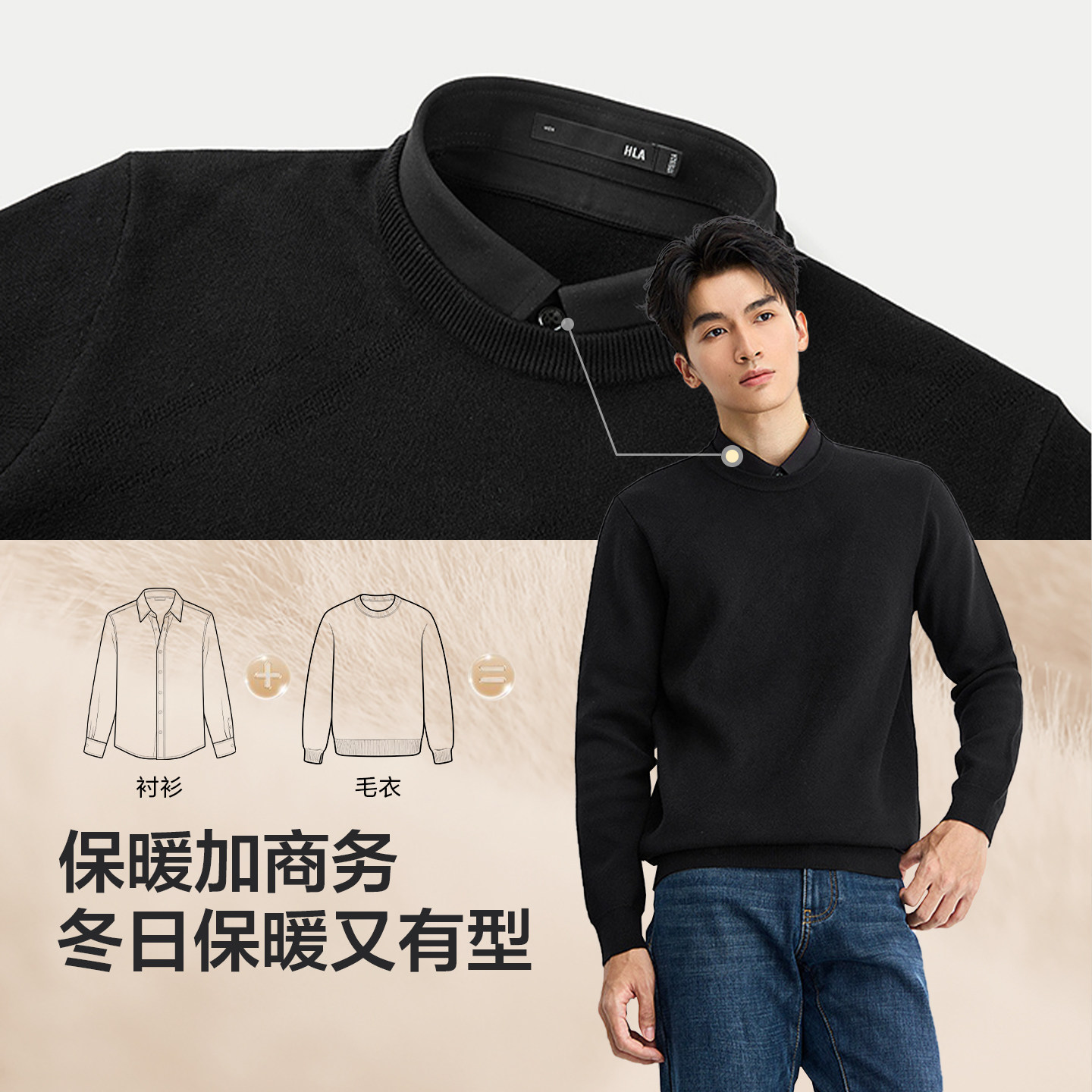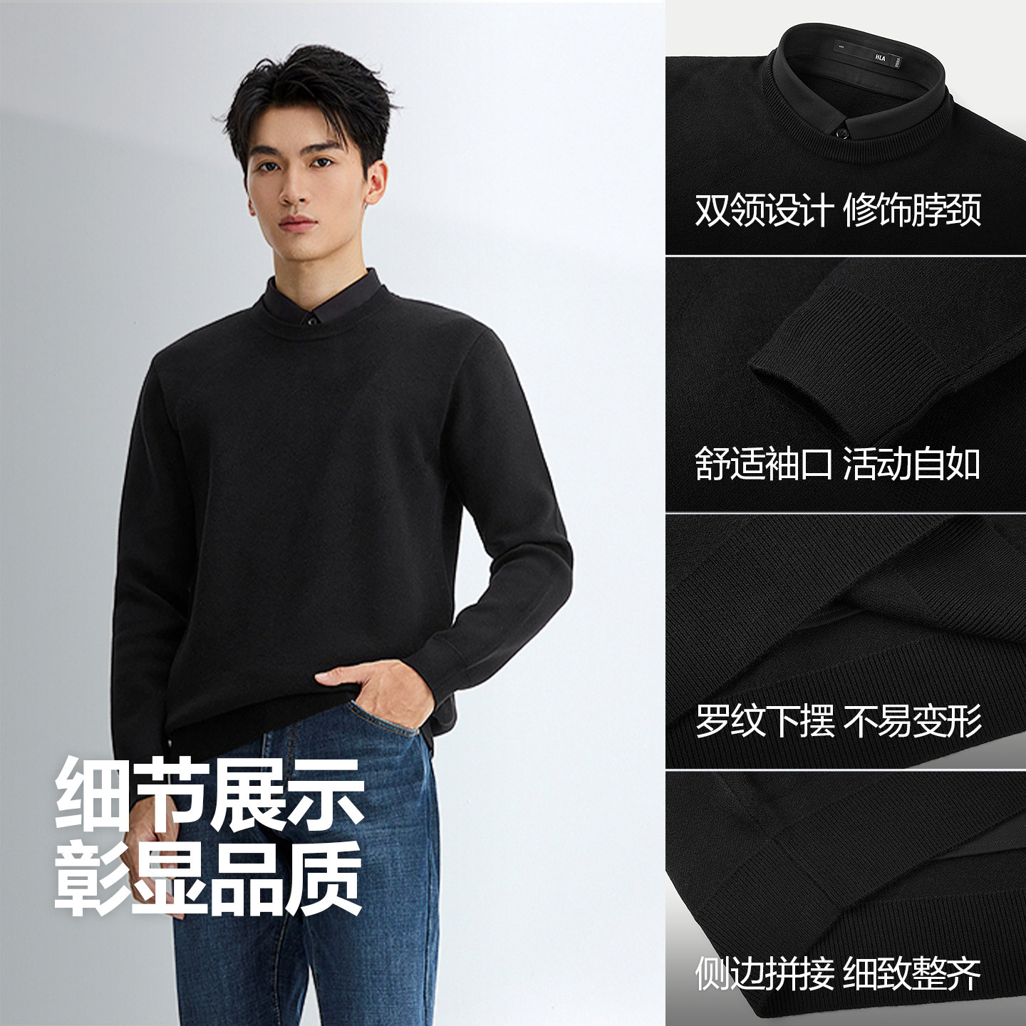 淘宝海澜之家假两件毛衣25秋冬柔软保暖加绒针织衫翻领衬衫中年爸爸男