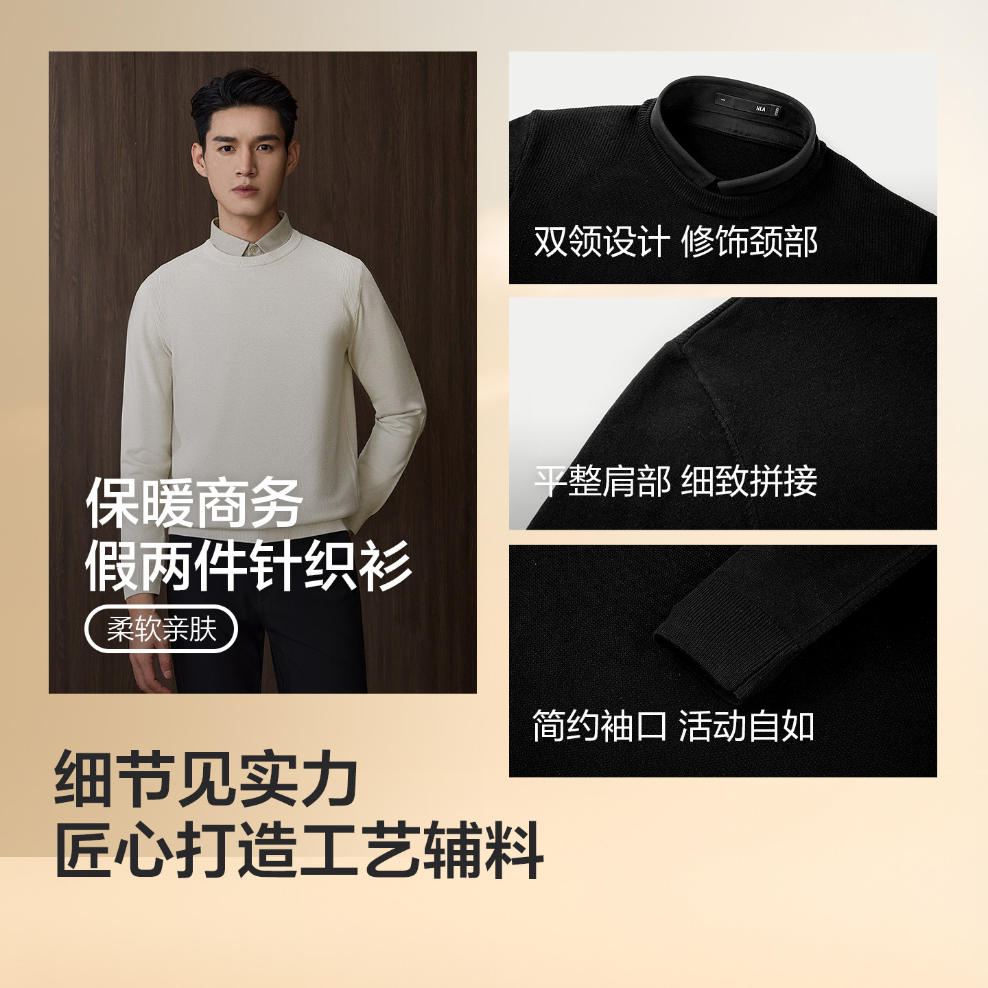 淘宝海澜之家商务中年假两件针织衫2025冬季新款双领纯色保暖毛衣男