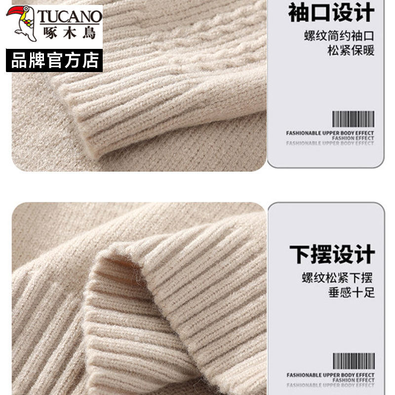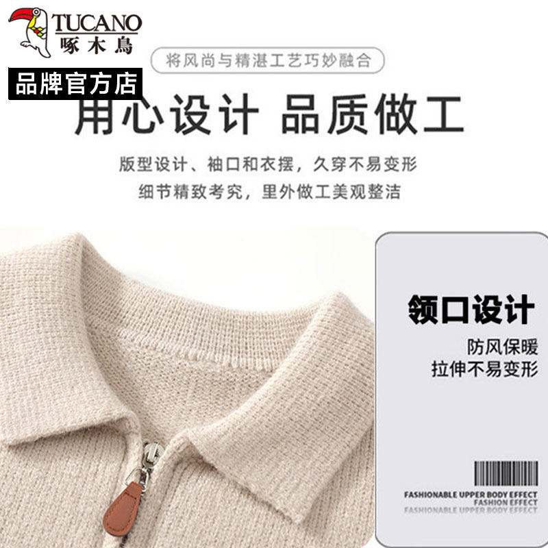 淘宝啄木鸟休闲慵懒风翻领半拉链毛衣男秋冬季宽松百搭针织衫打底衫潮