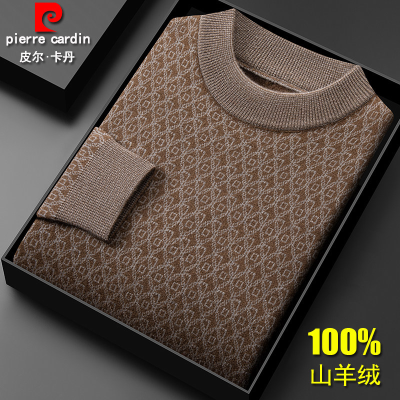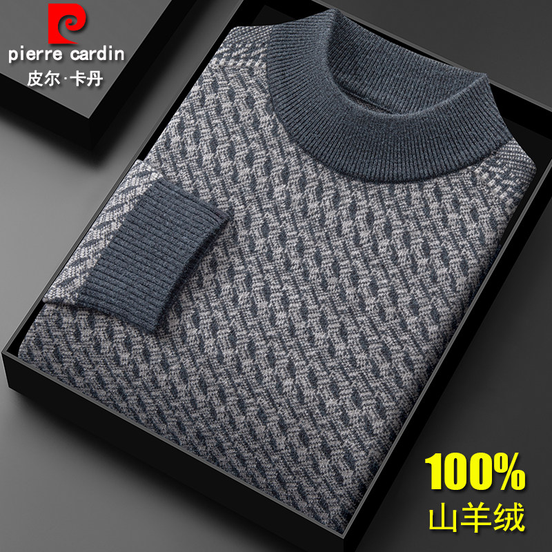 淘宝皮尔卡丹100%纯羊绒衫男士半高领加厚中老年羊毛衫冬季打底毛衣男
