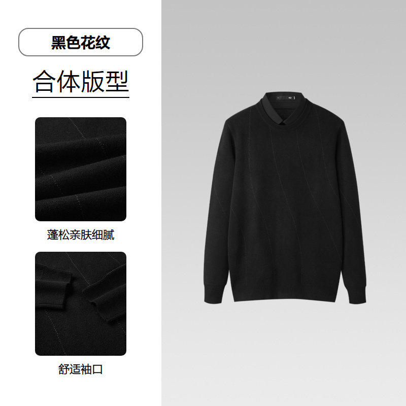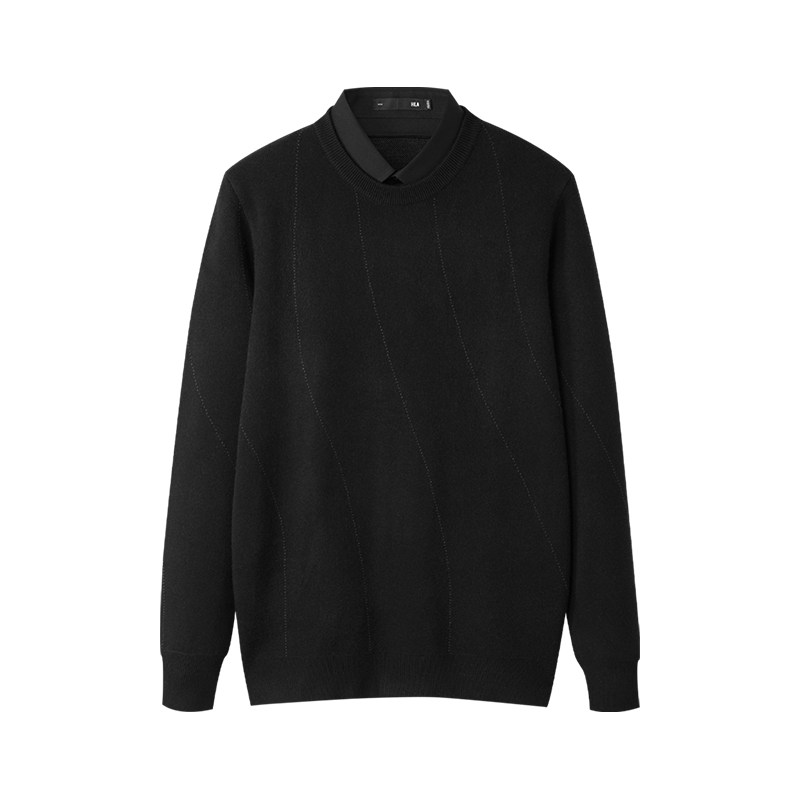 淘宝【加绒加厚】海澜之家轻商务针织衫2025冬季新款假两件黑色毛衣男