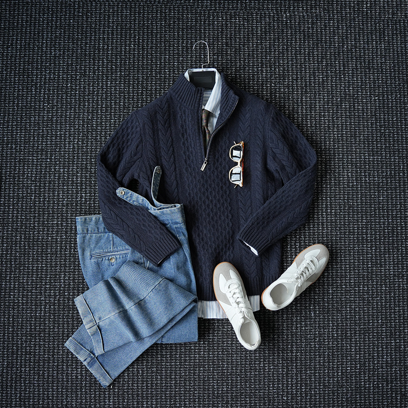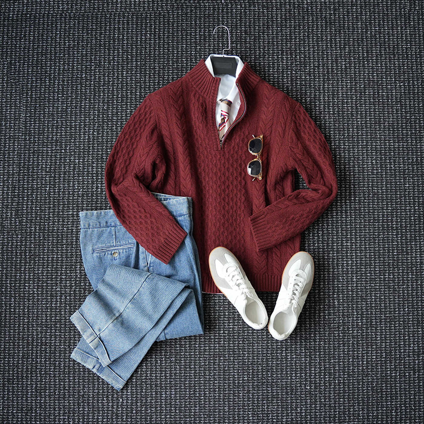 MrBu布先生半高拉链羊毛衫秋冬商务华夫格肌理毛衣外穿男BT12251
