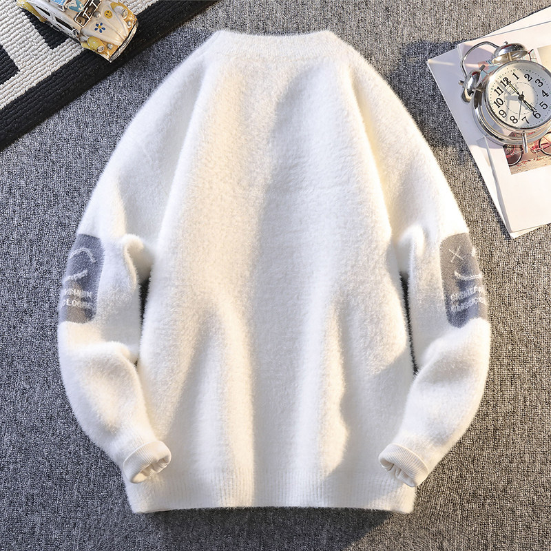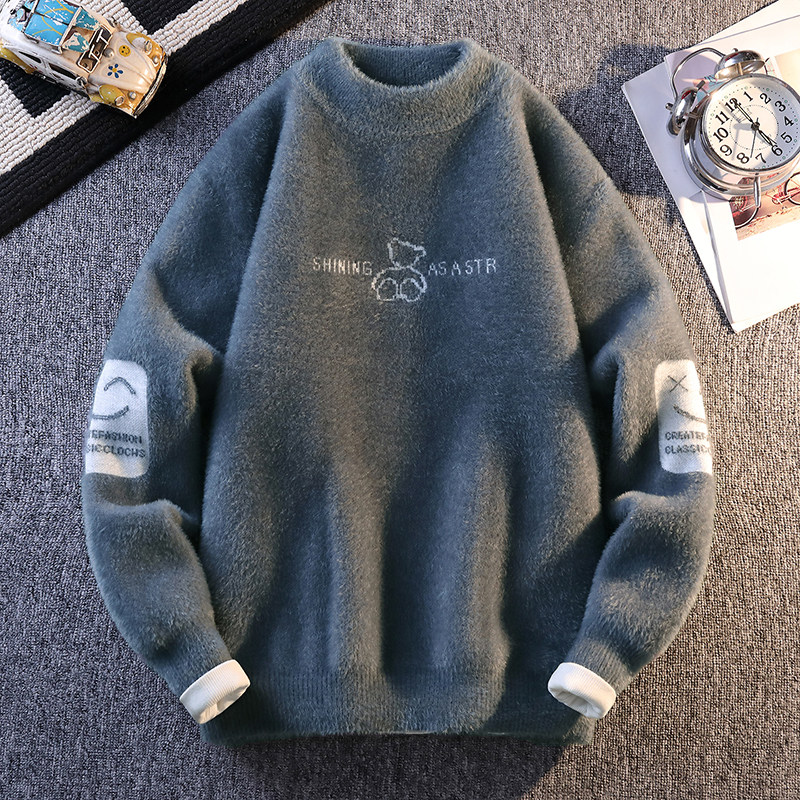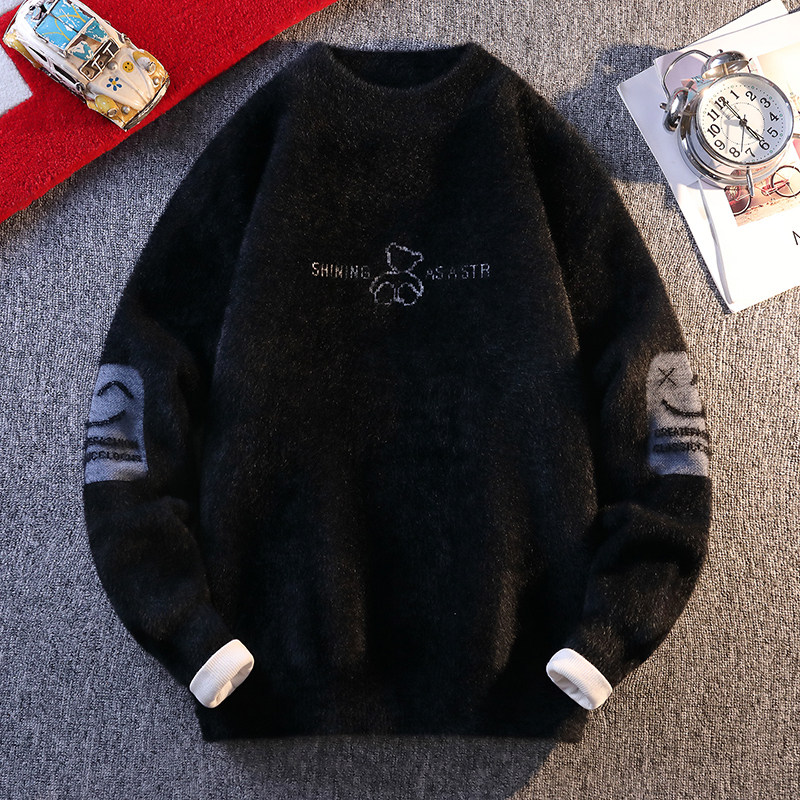 天猫秋冬季青少年毛衣男圆领仿水貂绒针织衫初高中学生加绒保暖打底衫