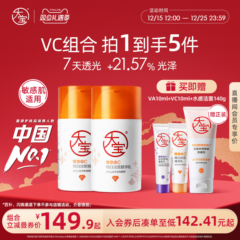 天猫大宝vc美白淡斑精华乳液面霜提亮紧致焕白男女脸部护肤品官方正品