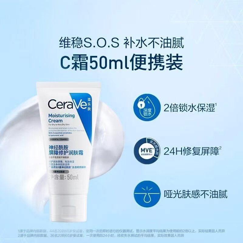 天猫CeraVe适乐肤面霜C霜50ml补水保湿神经酰胺C乳修护肌肤屏障旅行装