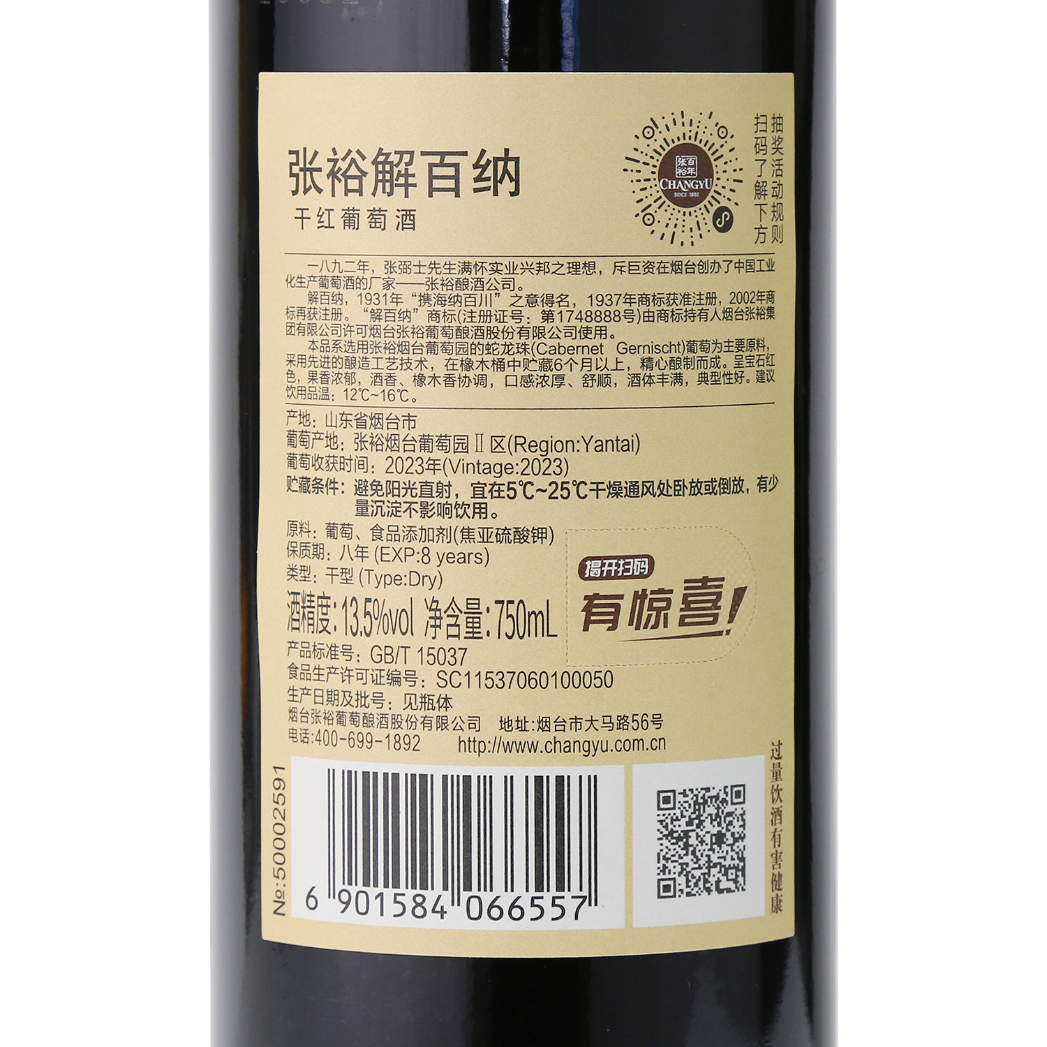 【张裕官方】特选级解百纳蛇龙珠干红葡萄酒红酒整箱6瓶旗舰店