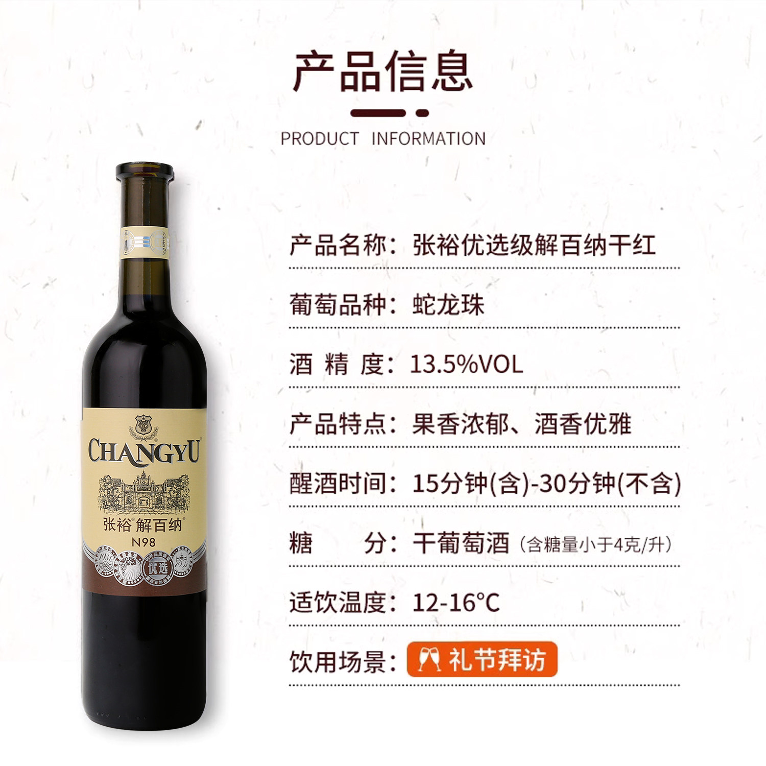 天猫【张裕官方】N98解百纳红酒整箱6瓶优选级蛇龙珠干红葡萄酒旗舰店