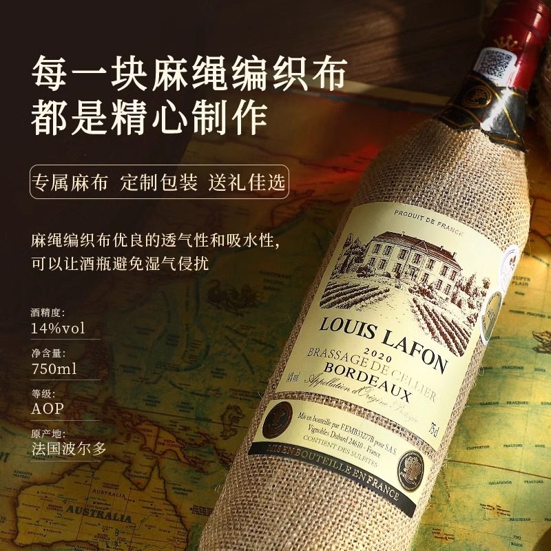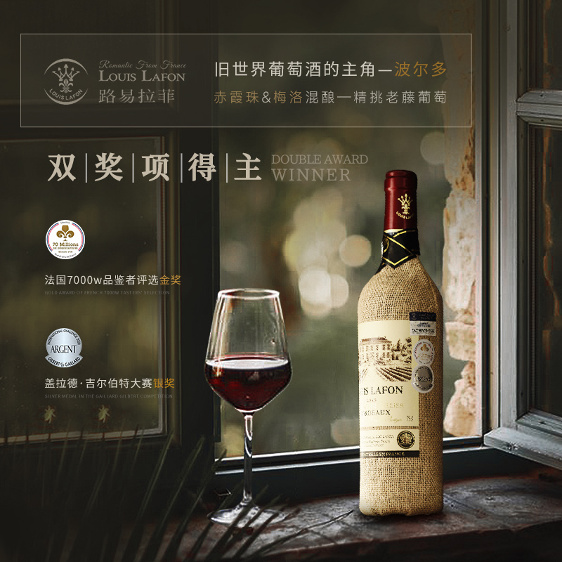 天猫获双奖法国进口红酒路易拉菲LOUISLAFON窖藏波尔多干红葡萄酒整箱