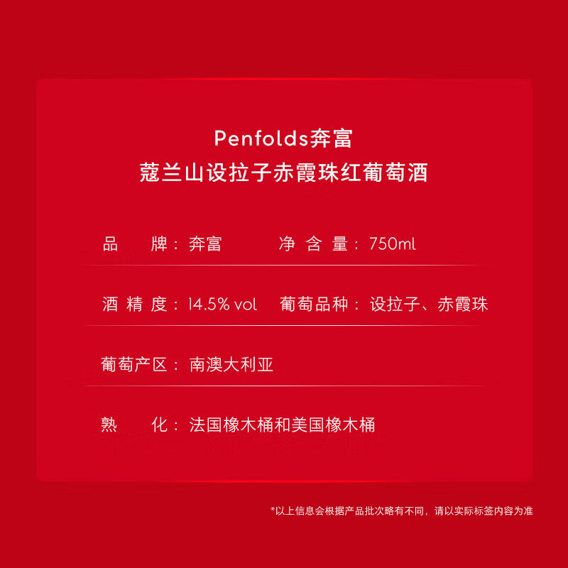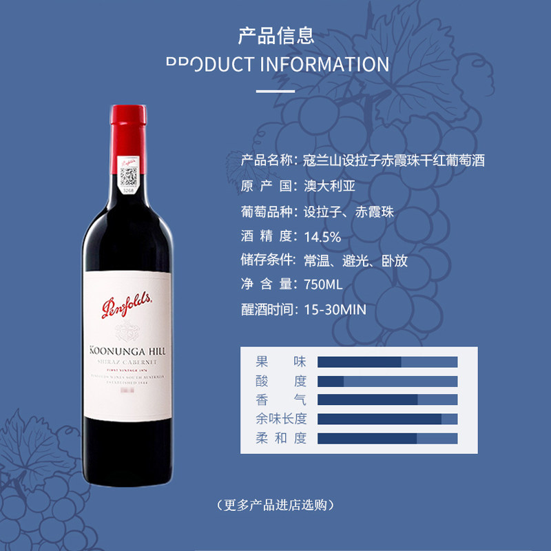 天猫【自营】Penfolds/奔富蔻兰山干红葡萄酒澳洲进口行货木塞整箱