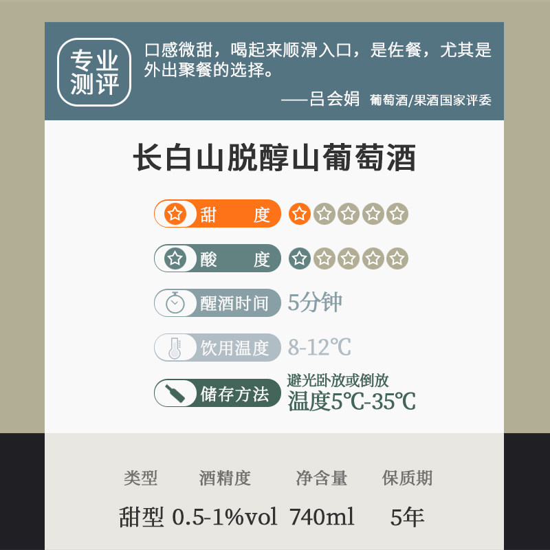 天猫长白山葡萄酒甜红脱醇非无醇酒精低度甜型红酒女士整箱节日礼品