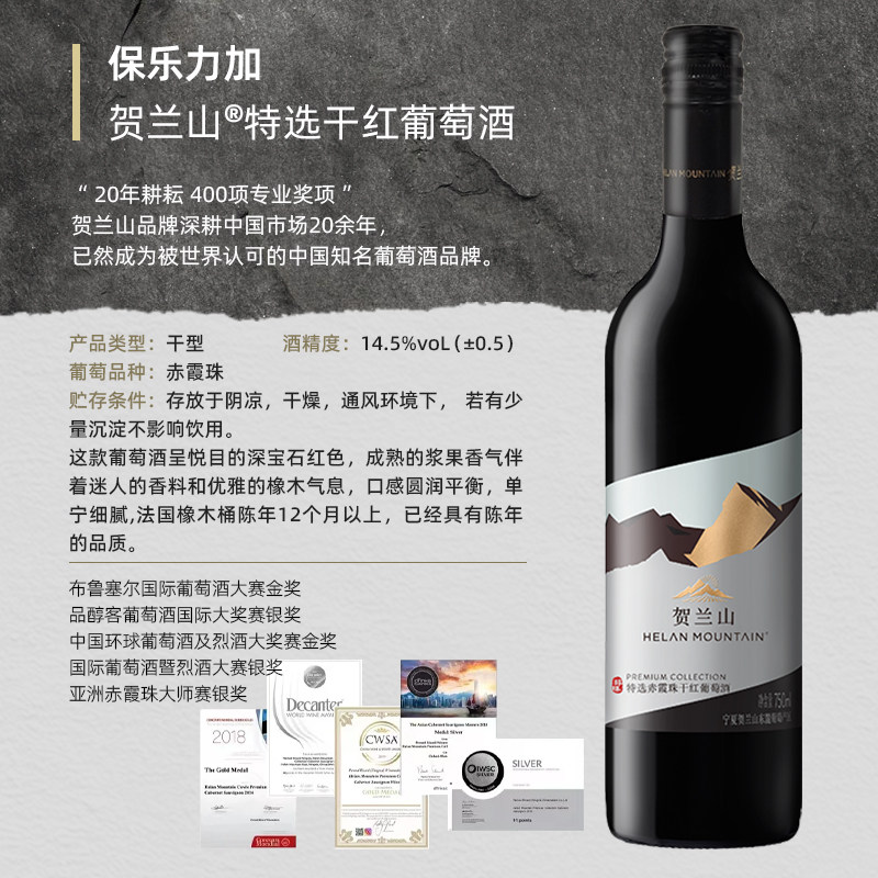 天猫贺兰山特选赤霞珠干红葡萄酒750ml红酒贺兰山宁夏东麓官方旗舰店