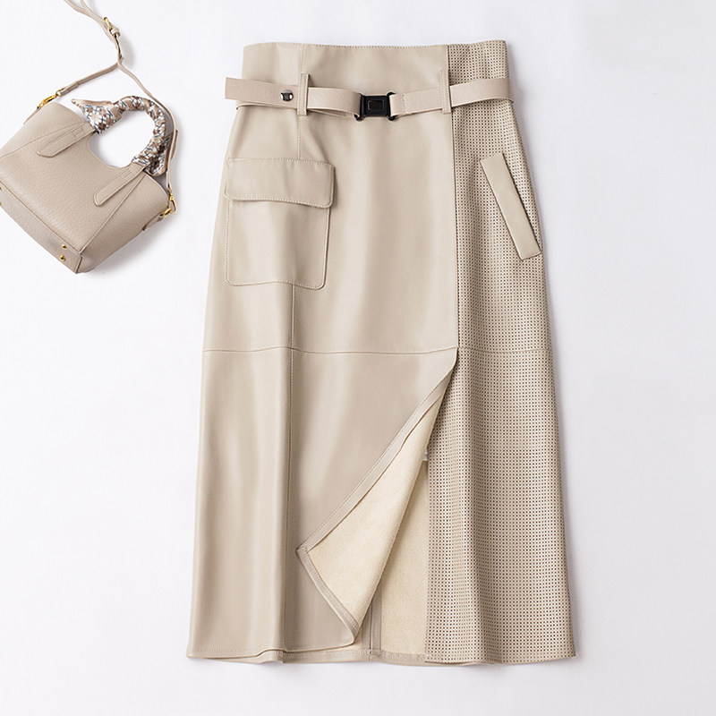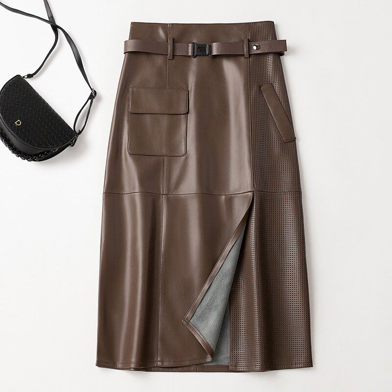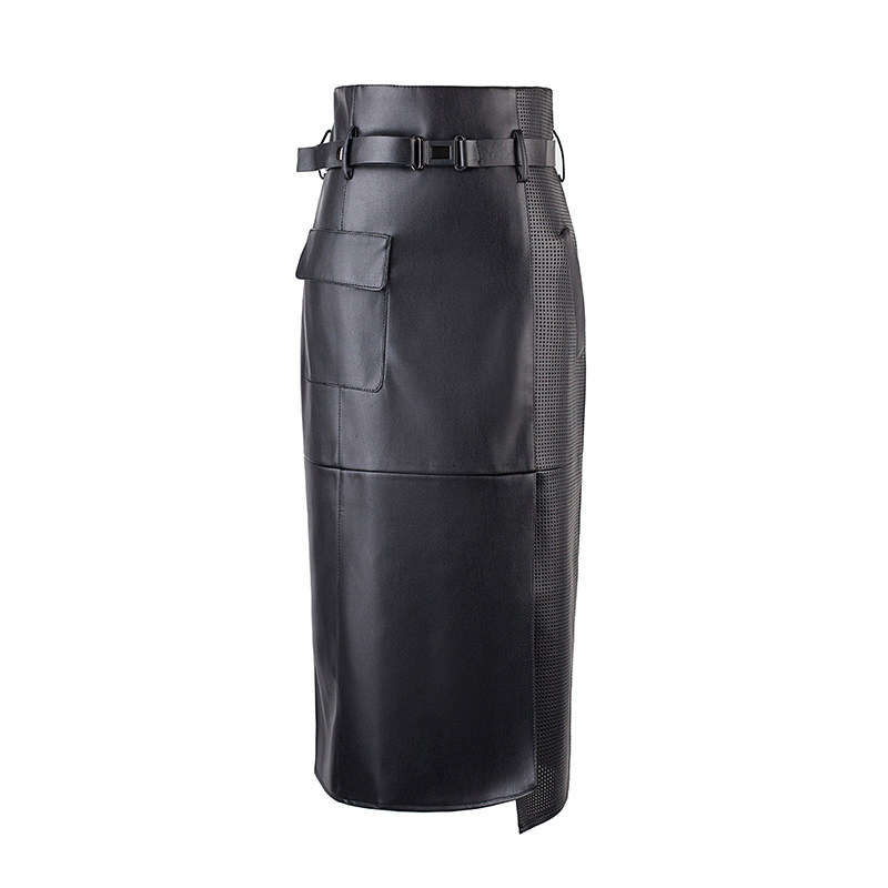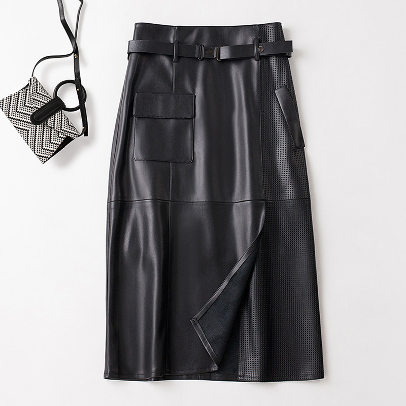 SUK 历久弥新!秋季黑色皮衣外套半身裙两件套设计感皮夹克套装女