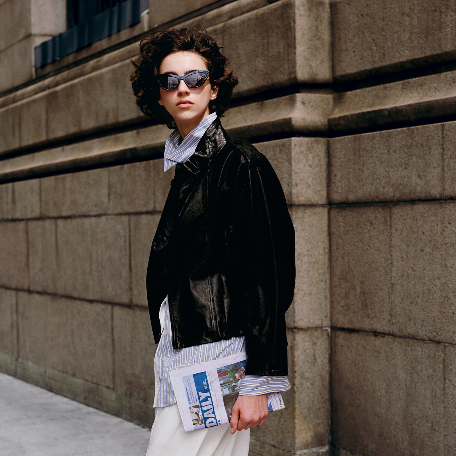 【迪丽热巴秦岚同款】NanaJacqueline短款收腰皮衣翻领夹克外套女