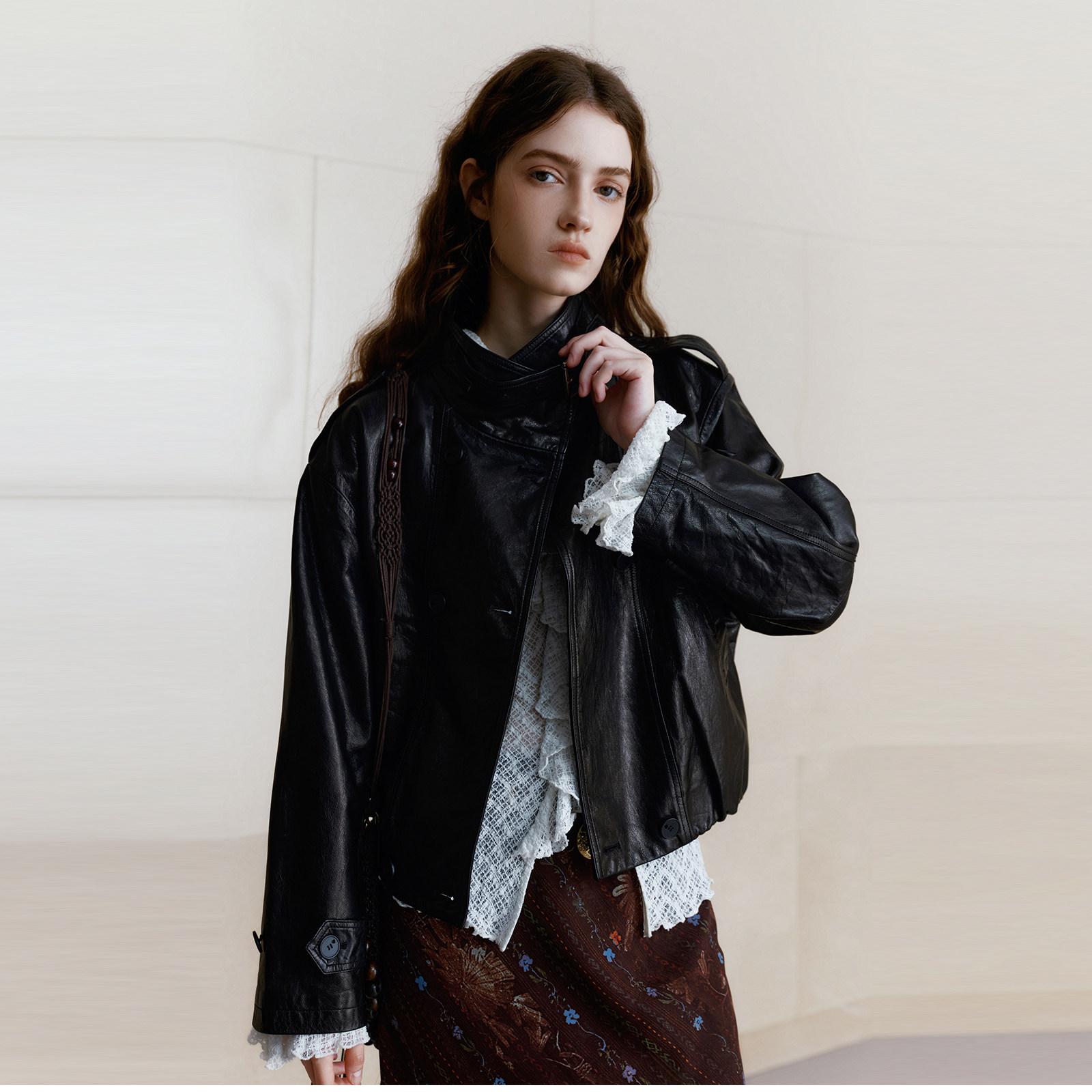 Wanatry 2025秋季新品推出复古立领小羊皮手工轻油蜡皮夹克,精选进口优质小羊皮,经传统手工轻油蜡工艺处理,赋予皮革细腻光泽与复古质感。立领设计优雅利落,搭配修身剪裁,凸显女性干练气质。细节处匠心独运,金属拉链与复古纽扣相得益彰,兼顾实用与美感。轻油蜡工艺使皮衣随穿着时间推移呈现独特光泽变化,越穿越有味道。无论是搭配裙装还是裤装,都能轻松驾驭都市通勤与休闲出行,展现低调奢华的时尚态度。Wanatry以精湛工艺与经典设计,为现代女性打造 timeless 的秋冬必备单品。