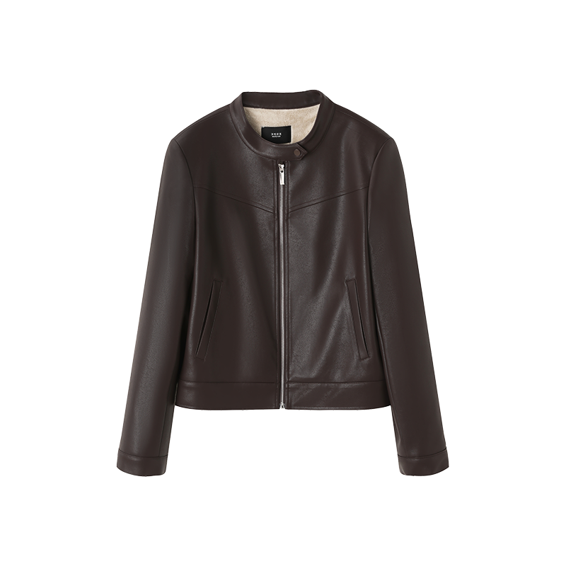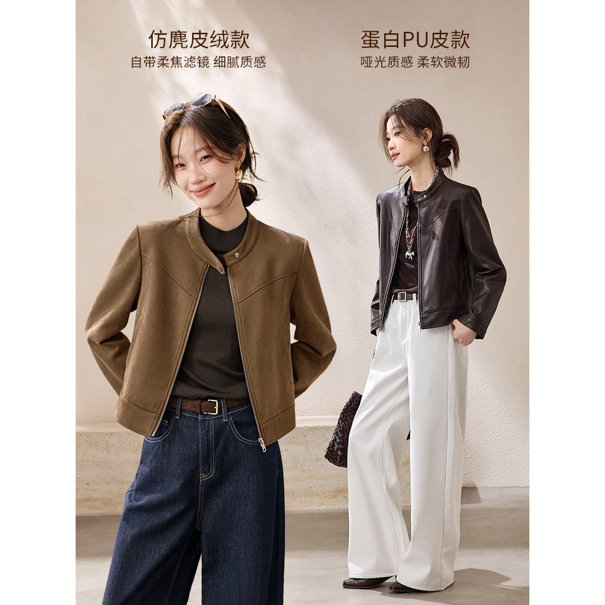 太平鸟肌理荔枝纹PU皮衣外套女25年新款立体廓形夹克皮衣女