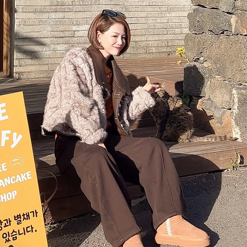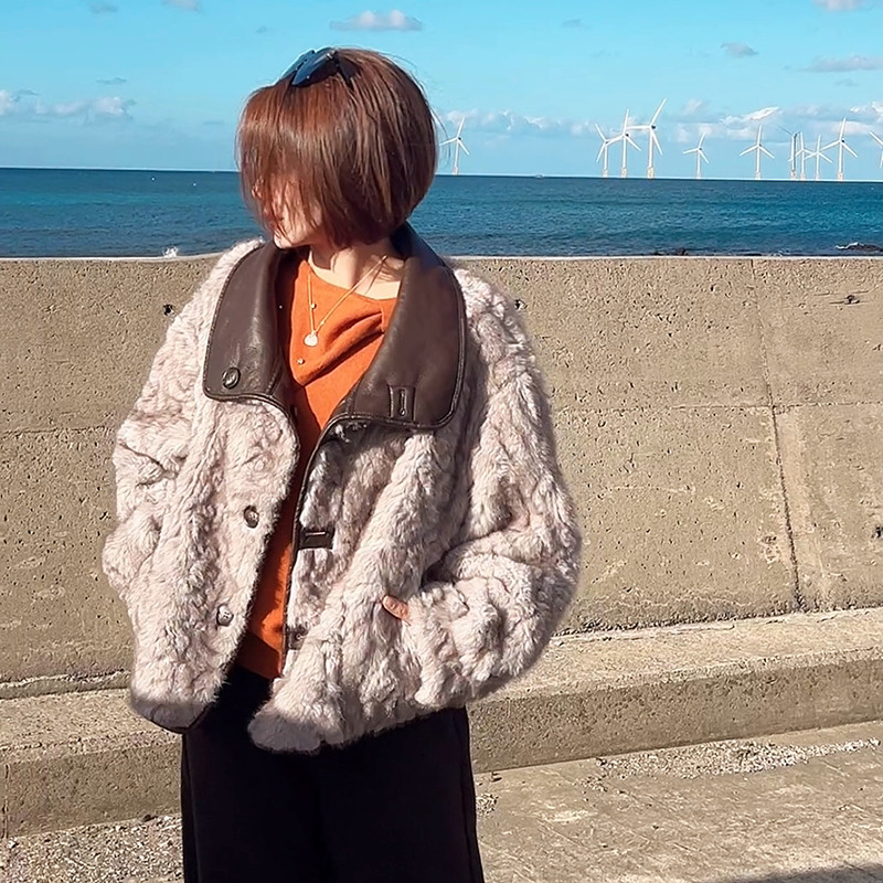 橘子树在哪儿韩系羊羔毛皮衣外套女冬季高级感保暖宽松机车皮夹克
