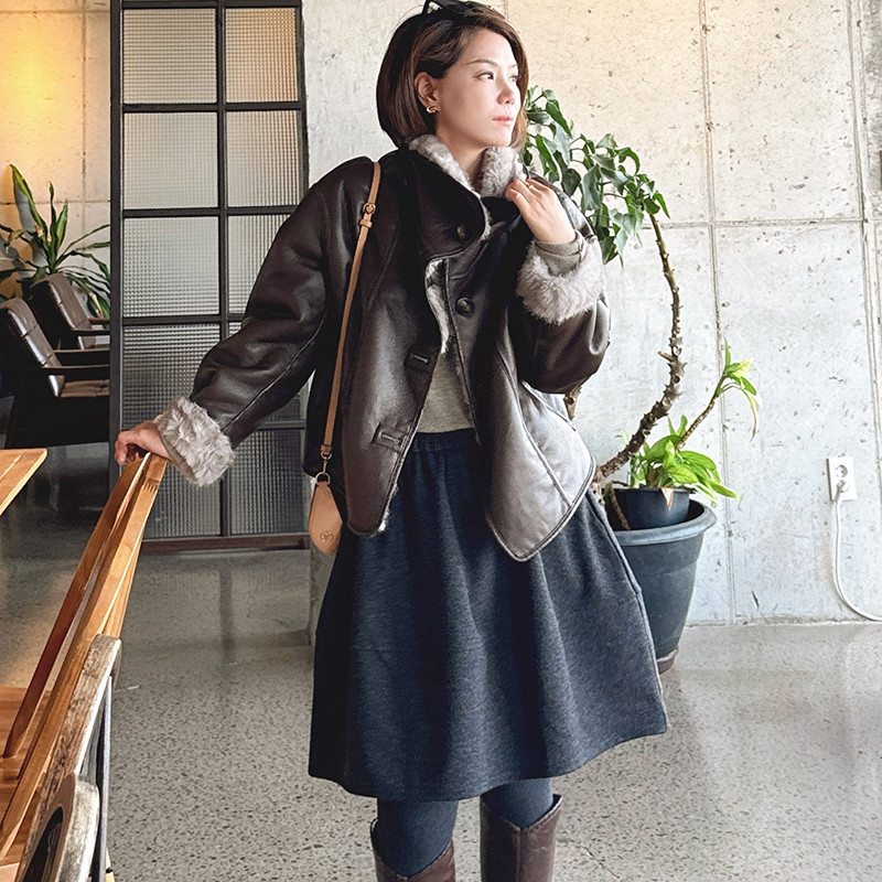 三福皮衣外套2025新款冬季复古宽松加绒保暖软皮衣夹克女装513300