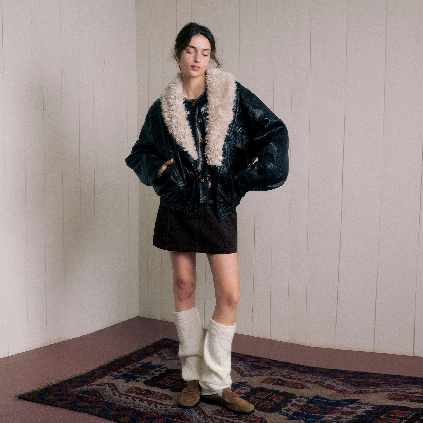 三福皮衣外套2025新款冬季复古宽松加绒保暖软皮衣夹克女装513300
