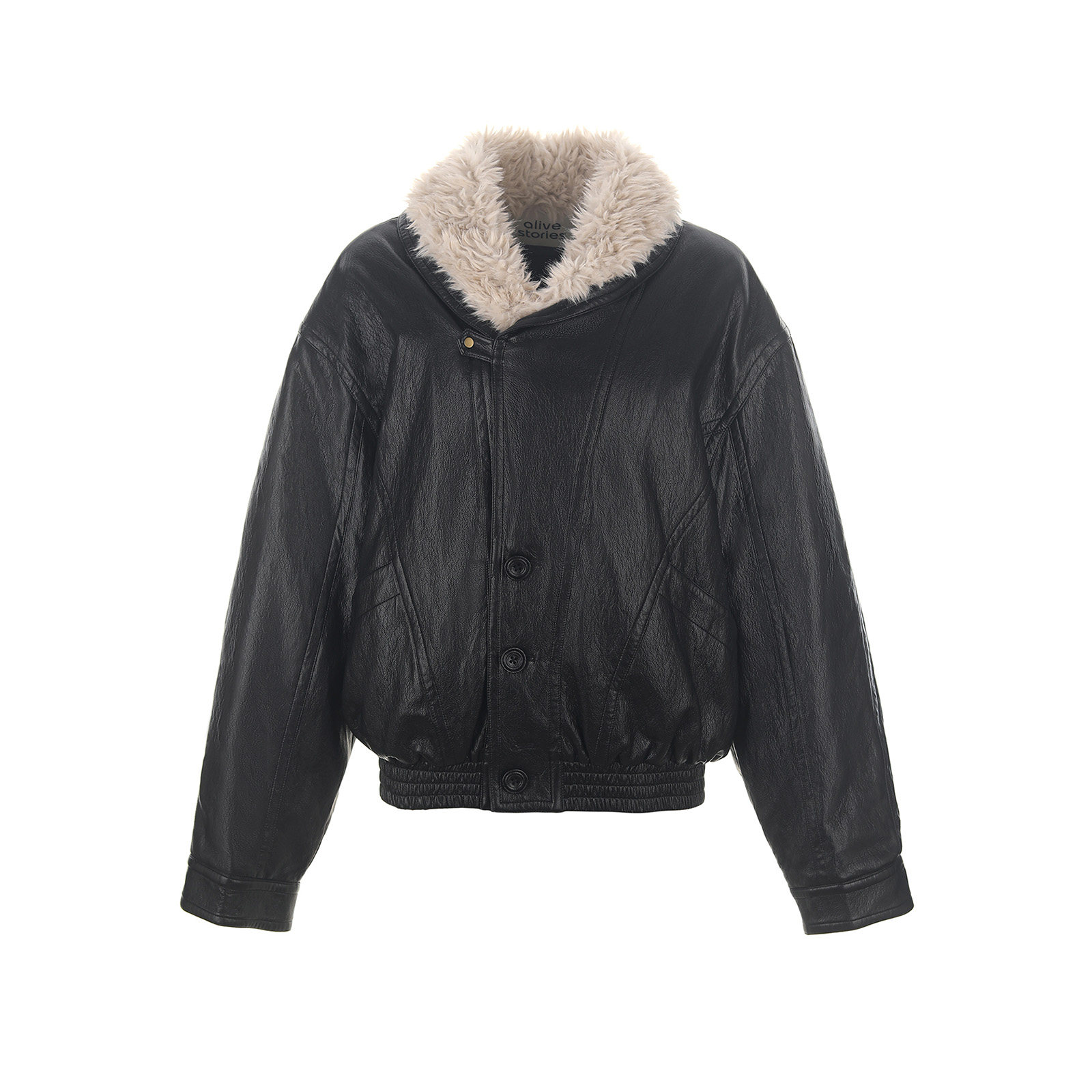 淘宝wana try仿毛领休闲夹棉黑色皮衣外套2025秋季新款时髦女款上衣