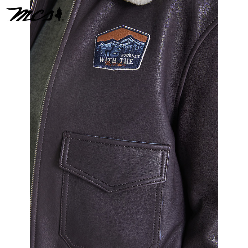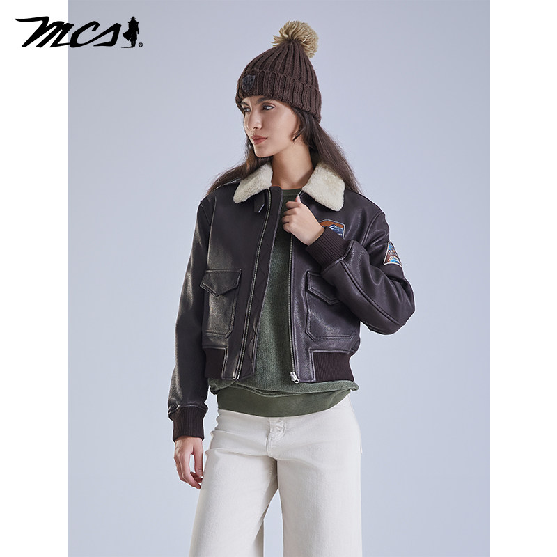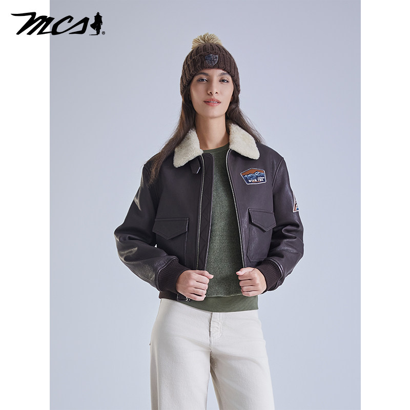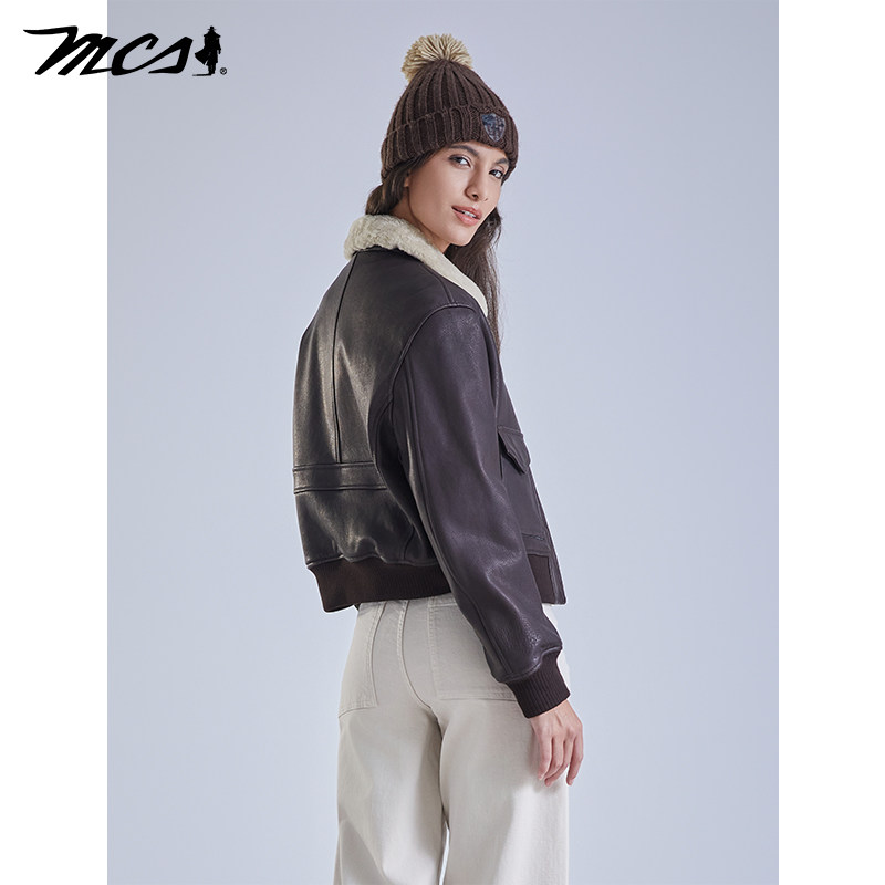 天猫MCS女装源自万宝路秋冬季新款山羊皮G1飞行员夹克宽松羽绒女皮衣