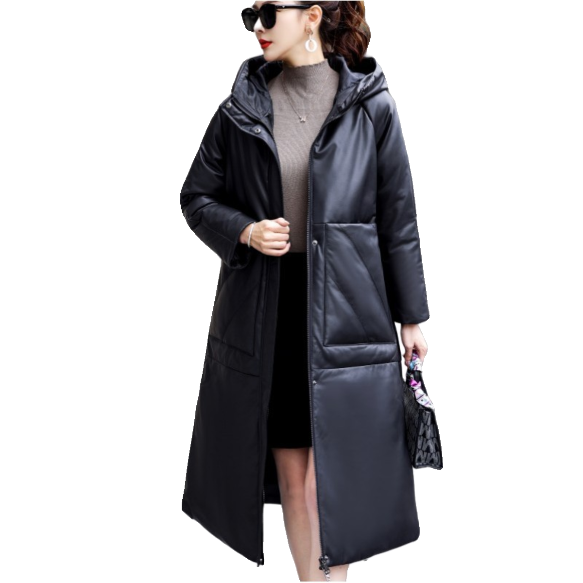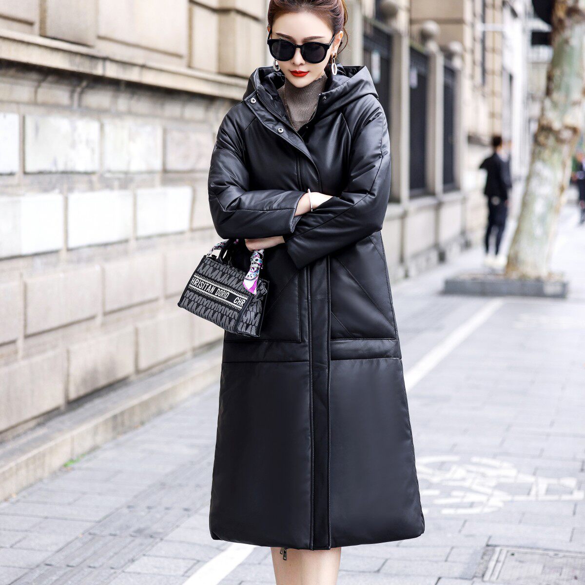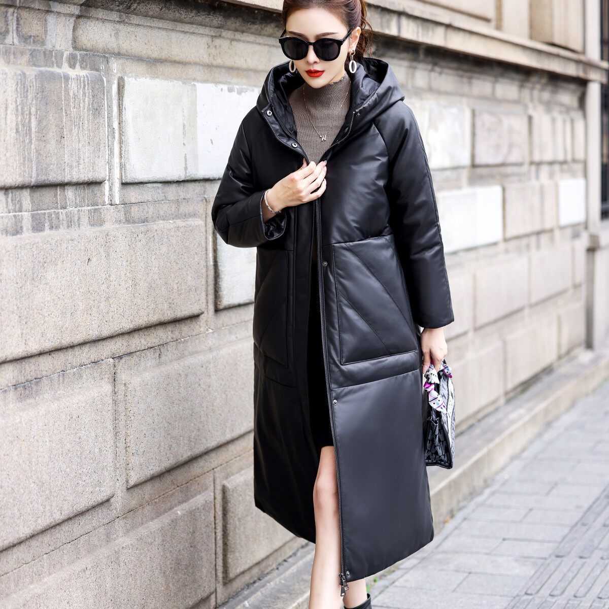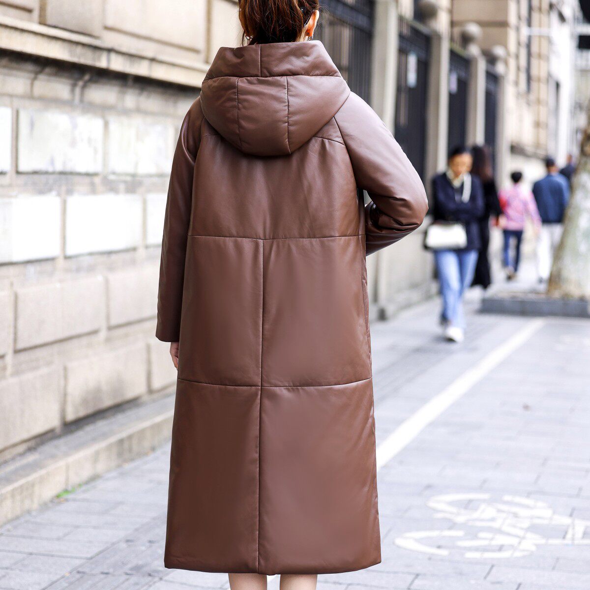 淘宝海宁真皮绵羊皮鹅绒羽绒服2025冬季新款大码中长连帽咖色皮衣外套