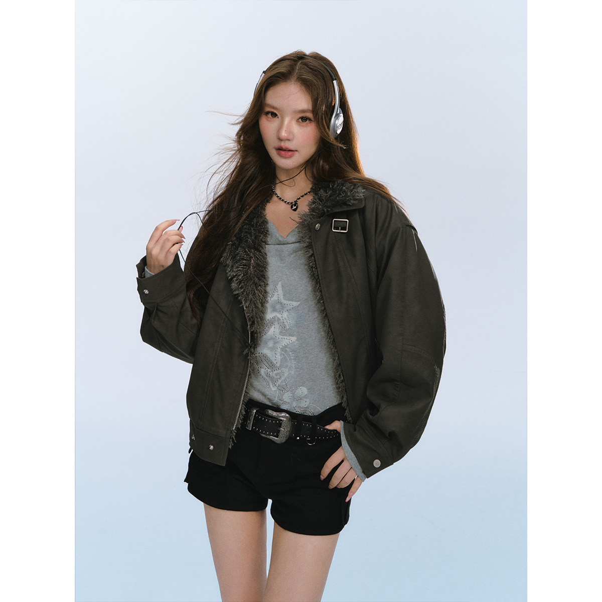 橘子树在哪儿韩系羊羔毛皮衣外套女冬季高级感保暖宽松机车皮夹克