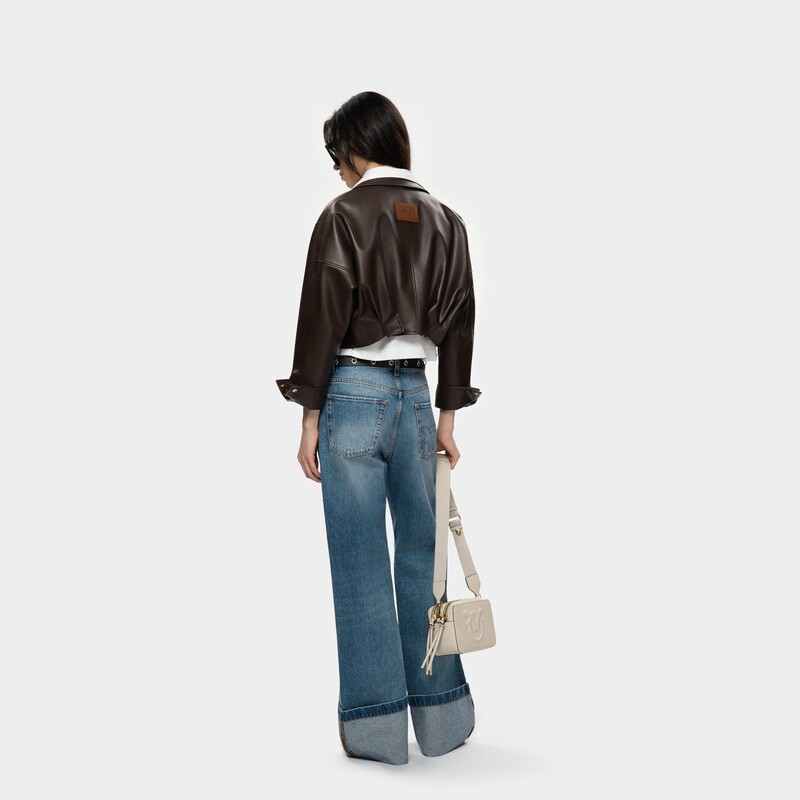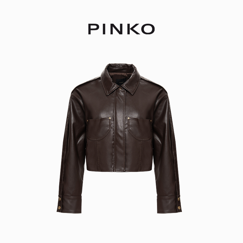 天猫PINKO女士通勤简约休闲复古短款口袋皮衣夹克外套PAF25332105