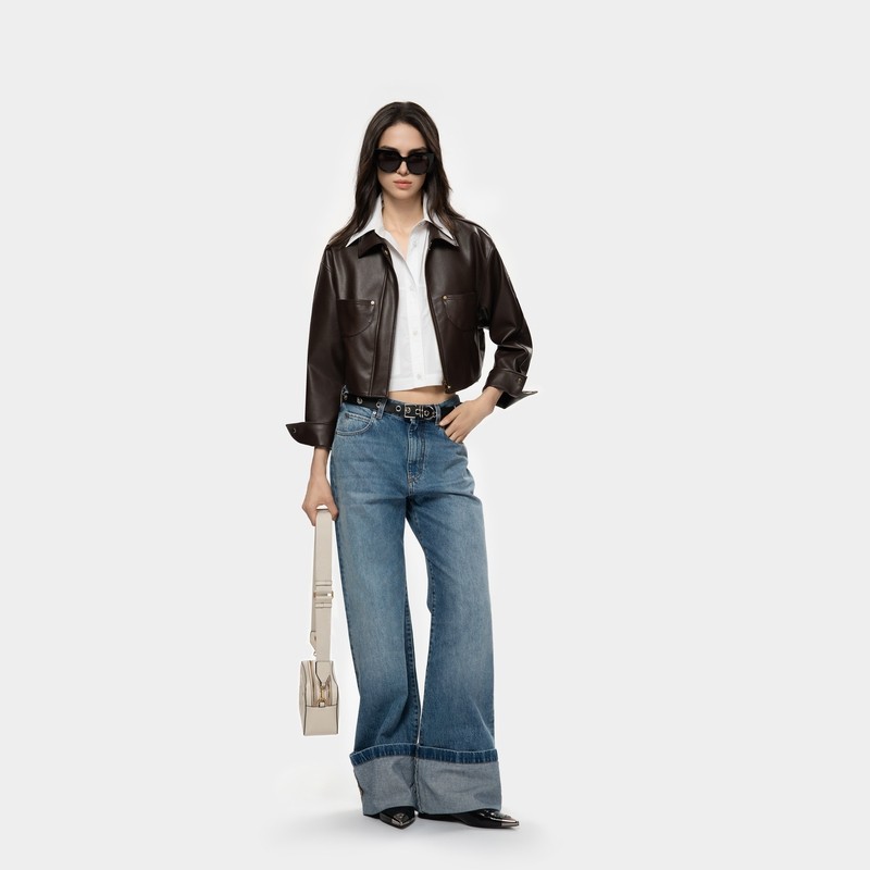 【迪丽热巴秦岚同款】NanaJacqueline短款收腰皮衣翻领夹克外套女